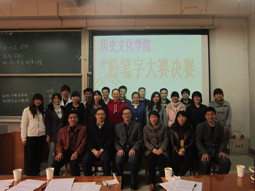 11月12日上午,由香港赛马会投注站 学生会学习部承办的“香港赛马会投注站 2011年粉笔字大赛”在综合楼105室举行。出席本次比赛的评委有香港赛马会投注站 王兆新老师、韩锋老师、王连生老师、李春玲老师、张俊成老师以及书法系老师董家鸿。