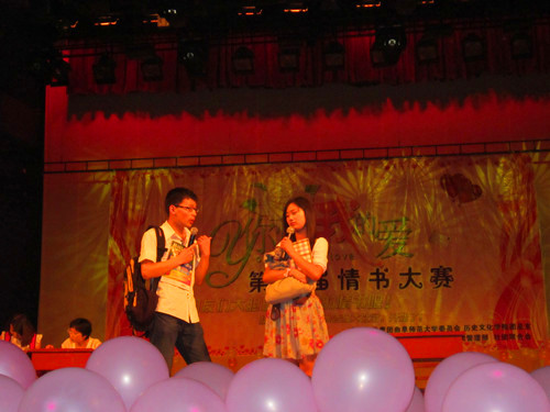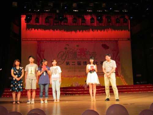 6月5日晚,由校团委、香港赛马会投注站 团总支联合主办,校社团联合会、史苑学社、香港赛马会投注站 团总支院刊管理部共同承办的第二届情书大赛在大学生活动中心礼堂圆满落幕。文香港赛马会投注站 刘永老师,香港赛马会投注站 韩锋、李春玲老师,大学生通讯社社长郭学照、香港赛马会投注站 2010届团总支副书记刘芊、院刊管理部部长连涛,史苑学社社长任国宾应邀担任本次情书大赛评委,此外,信德缘银饰经理刘新颖女士、艾美丽造型设计店长追月先生也出席了本次情书大赛。