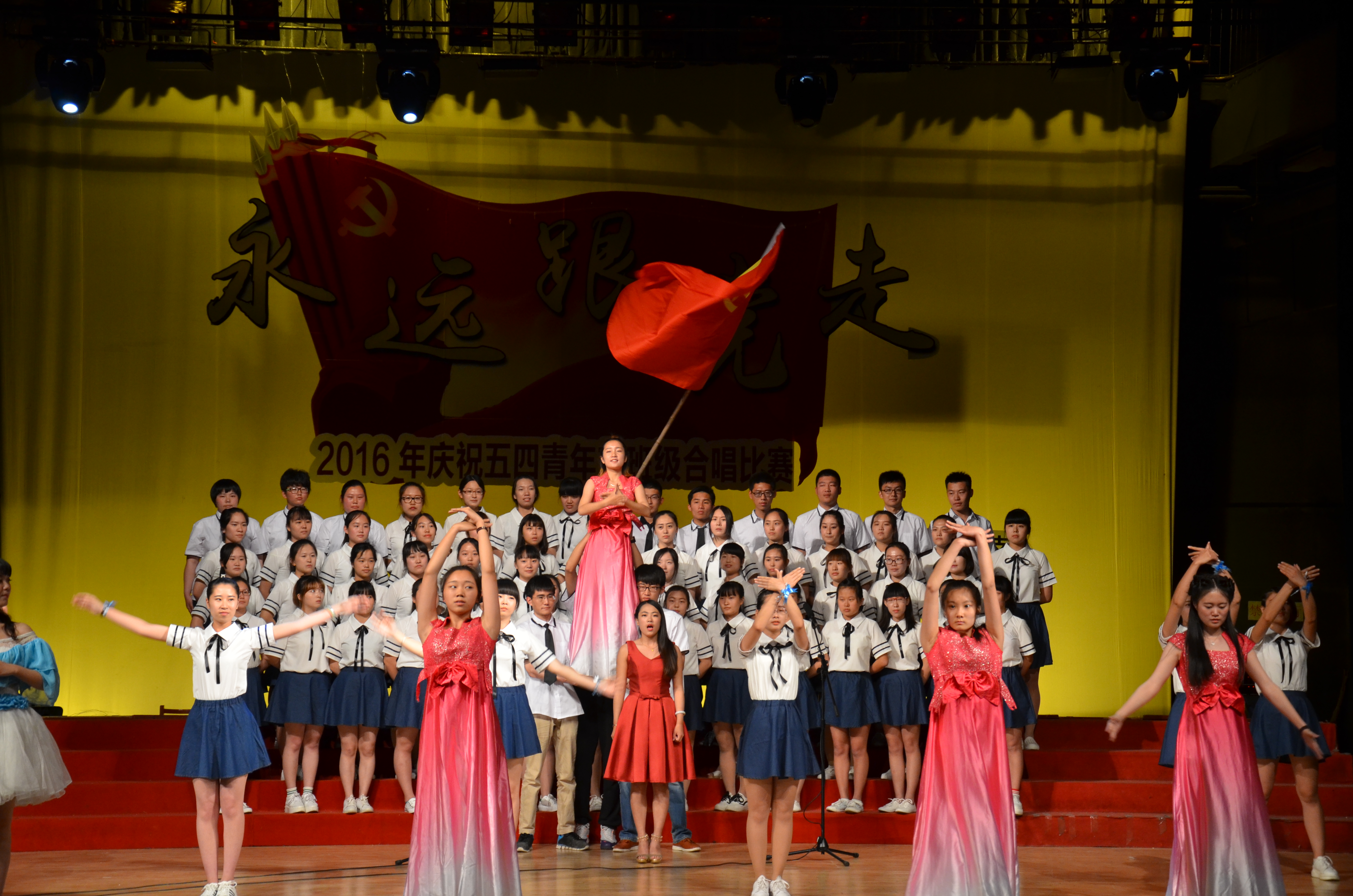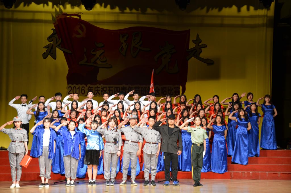 5月15日晚,香港赛马会投注站 “永远跟党走”——2016年纪念五四青年节班级合唱比赛在大学生活动中心礼堂举行。