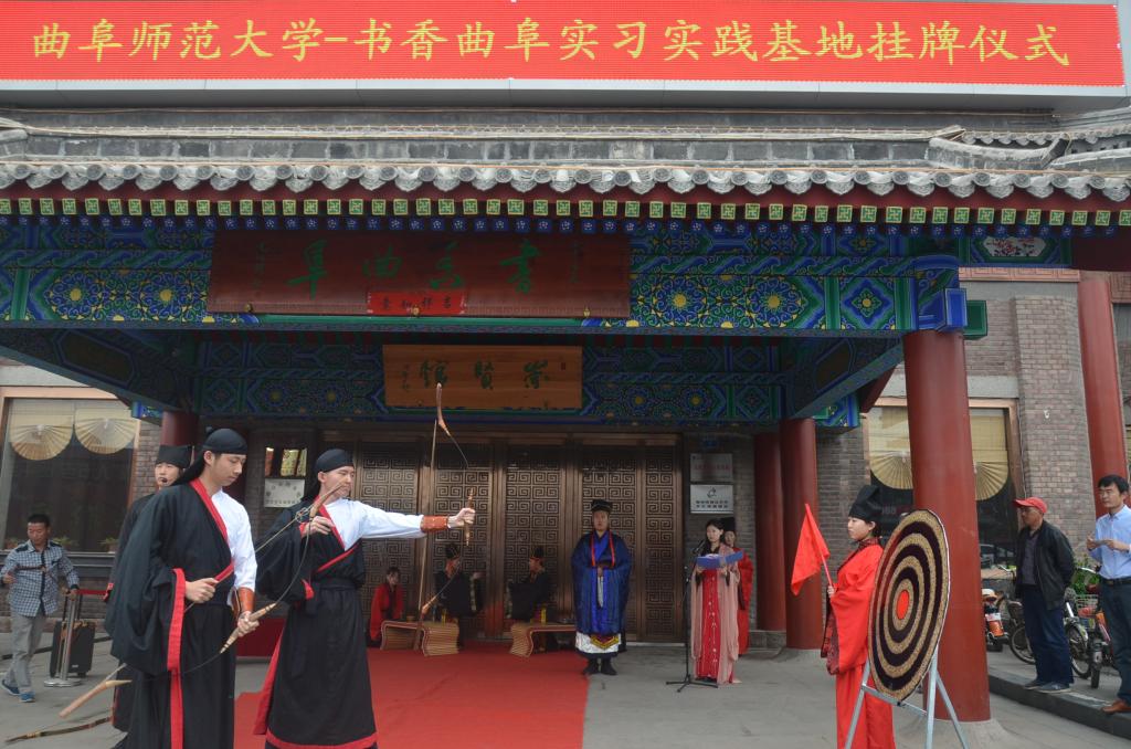 仪式期间,香港赛马会投注站 志愿者代表李怡林同学发言,葛俊岳主任、屈跃宽书记为“传统文化教育实践基地”“大学生社会实践基地”等揭牌。仪式最后,香港赛马会投注站 学生进行了射礼展演。