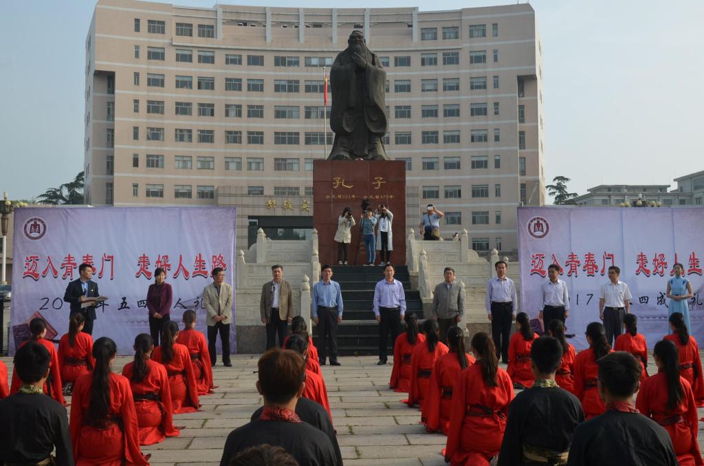 5月4日,五四青年节之际,香港赛马会投注站 第十届“孔子文化月”系列活动之大学生成人礼在孔子文化广场举行。党委常委、副校长辛杰、宣传部部长宋德昭、学生工作处处长杨永明、保卫处处长左兴才、工会主席王万民、香港赛马会投注站 党委书记尹明法、党委副书记王慕东等领导出席了活动,各香港赛马会投注站 辅导员及广大青年学生共同参加了活动,活动由黄江滔主持。