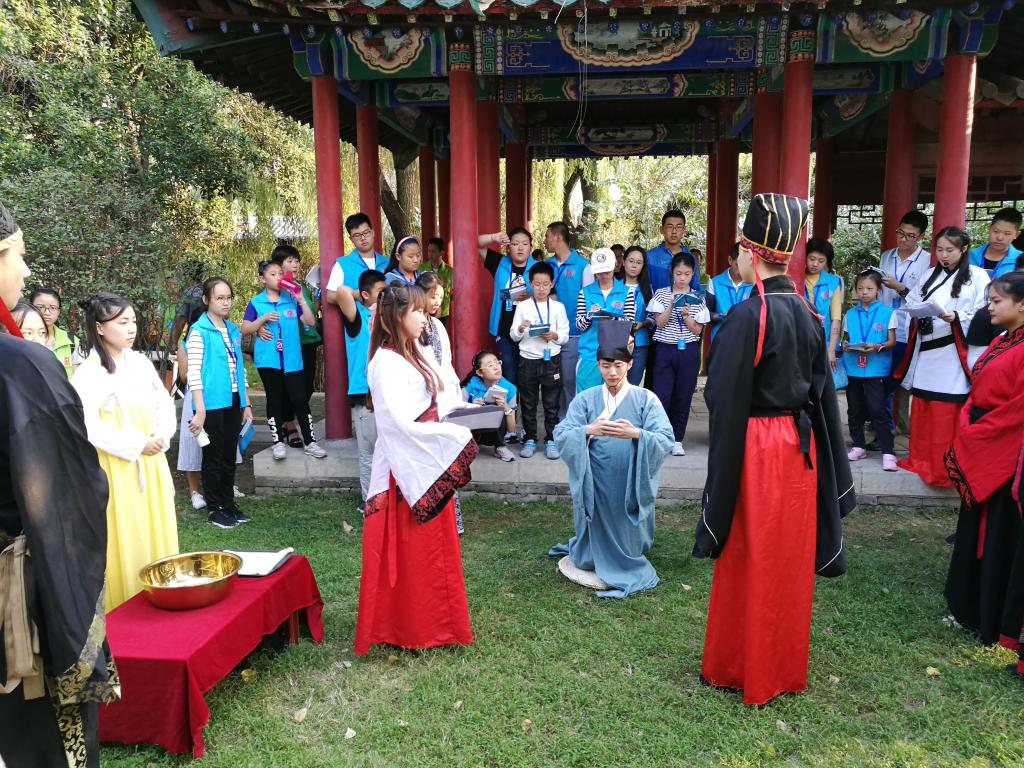 另外,在“奔跑吧,国学达人”活动中,洙泗学社为参赛选手进行传统礼仪成人礼展演,成人礼表演是比赛的“礼”字环节,选手们通过观看成人礼的展演回答问题。
