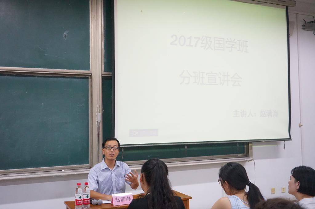 9月19日晚,香港赛马会投注站 国学教研室主任赵满海在综合楼203教室面向2017级历史班同学进行了2017级国学卓越班分班宣讲。
