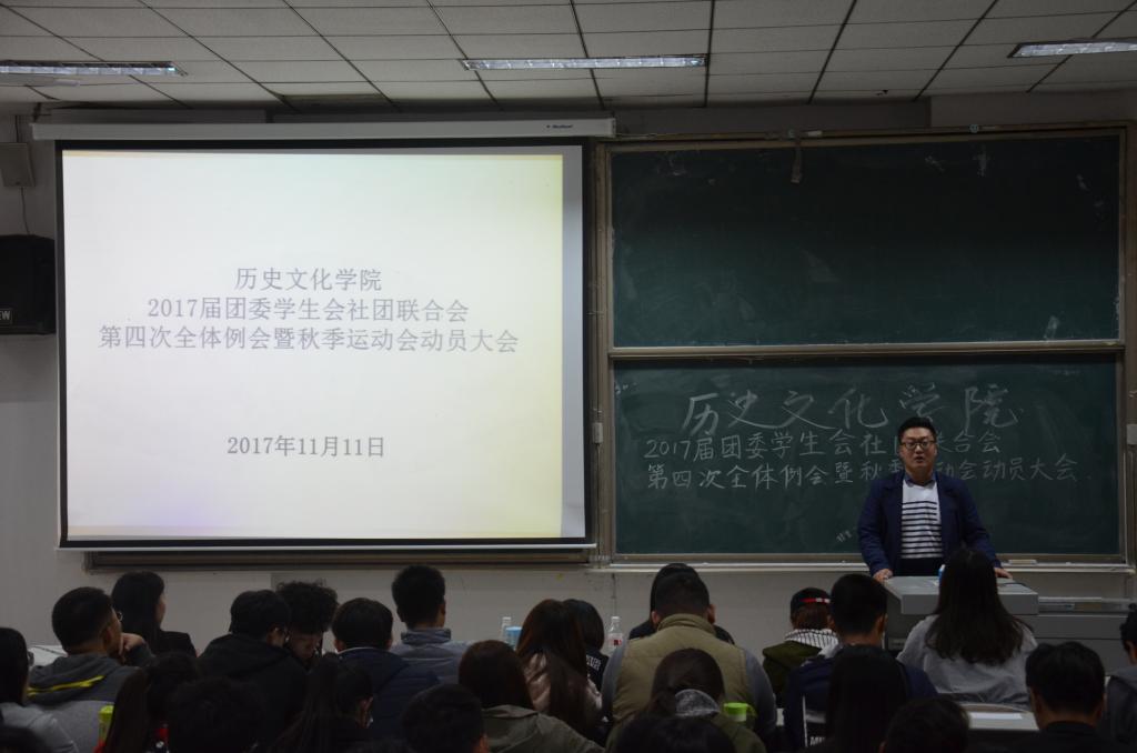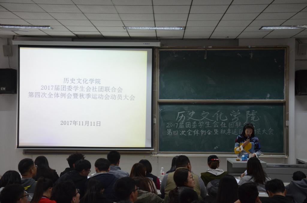 11月11日,香港赛马会投注站 在综合楼101教室召开2017届团委学生会社团联合会第四次全体例会暨秋季运动会动员大会。会议由学生会副主席刘雅静主持,香港赛马会投注站 学生会主席团及学生会全体成员参加了会议。