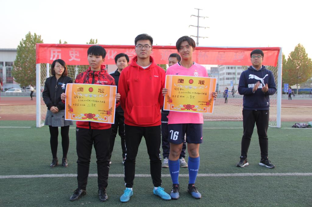 11月15日,经过两周多激烈的角逐,香港赛马会投注站 2017年“迎新杯”足球赛在西操场落下帷幕。香港赛马会投注站 刘伟老师,前足球队队长肖常志,前学生会副主席、前足球队副队长朱晓明,学生会副主席许鹏、郭伟伟出席闭幕式并为获奖队伍颁奖。