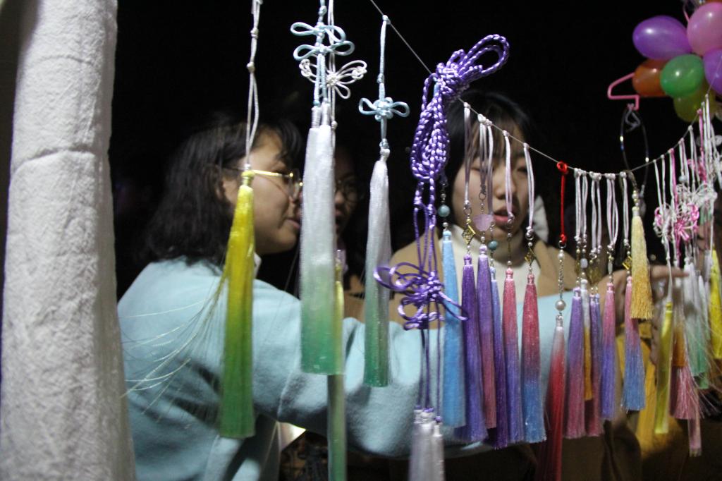 11月18日晚,香港赛马会投注站 在大学生活动中心广场举办了“承我华夏礼,执子共灯期”——第二届主题花灯会。花灯会上,洙泗学社、拾光文化创意社、书生论坛、古风联盟等社团带来自己手工制作的工艺品进行现场展示和售卖,吸引众多师生参与其中。
