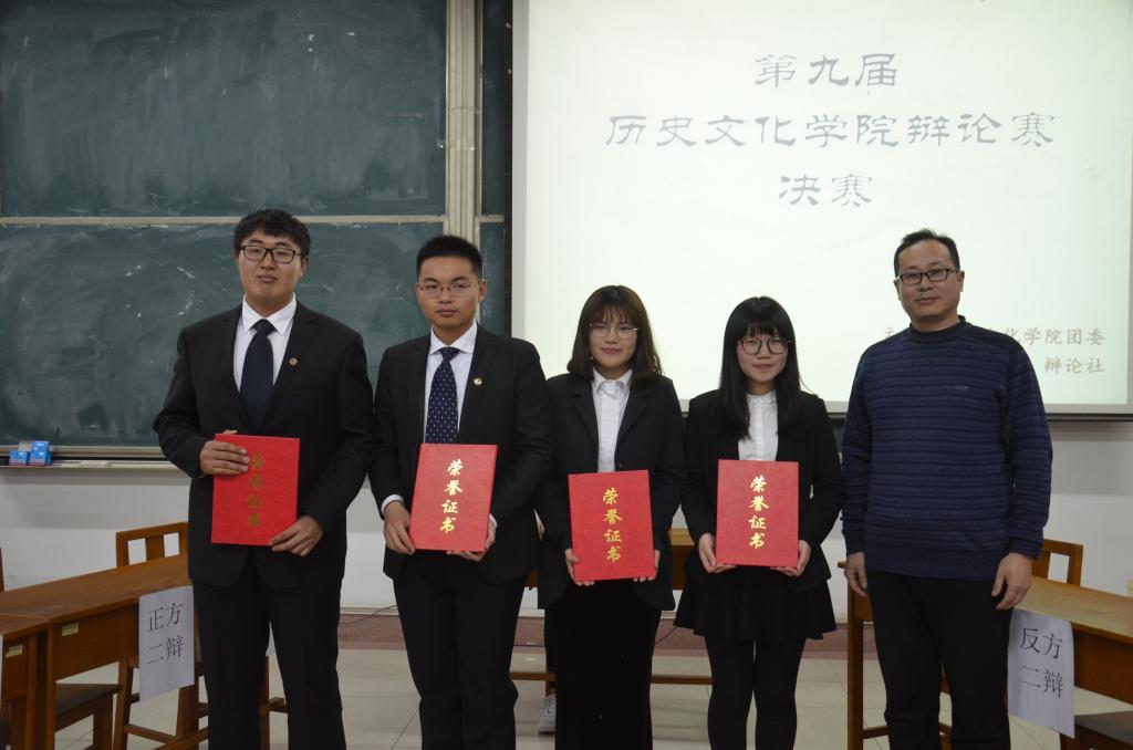 经过初赛、复赛、四分之一决赛和半决赛的激烈对决,由唐子清、刘月、霍文博、杨静组成的队伍和由许欣楠、贠伟华、李悦、丁岳组成的队伍挺进决赛。辩论赛围绕“自媒体时代,人们离真相是否越来越远”展开激烈交锋。开篇立论环节中,双方一辩胸有成竹,清晰自信地阐述了本队的观点。攻辩环节双方围绕各自观点展开了“唇枪舌战”,赢得现场观众的阵阵掌声。自由辩论环节更是展现了辩手们超强的逻辑思维和快速反应能力。总结陈词环节中,辩手们的论述条理清晰,层层递进,为辩论画上圆满的句号。辩论中,队员之间相互支持、配合默契,辩论双方你问我答,旗鼓相当。韩锋老师和续大鹏老师就双方表现做出点评。随后进行的以“人类是否需要超级英雄”为辩题的表演赛,为辩论赛添上了精彩的一笔。最终,由唐子清、刘月、霍文博、杨静组成的队伍获得本届辩论赛的冠军,2016级国学班霍文博,2017级历史三班李悦获得最佳辩手的称号。