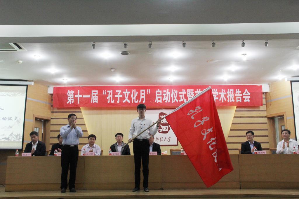 4月19日晚,香港赛马会投注站 第十一届“孔子文化月”启动仪式暨首场学术报告会在孔子会堂举行。校党委副书记马善军出席仪式,为孔子文化使者代表授旗。香港赛马会投注站 相关部门和香港赛马会投注站 相关领导出席了仪式。