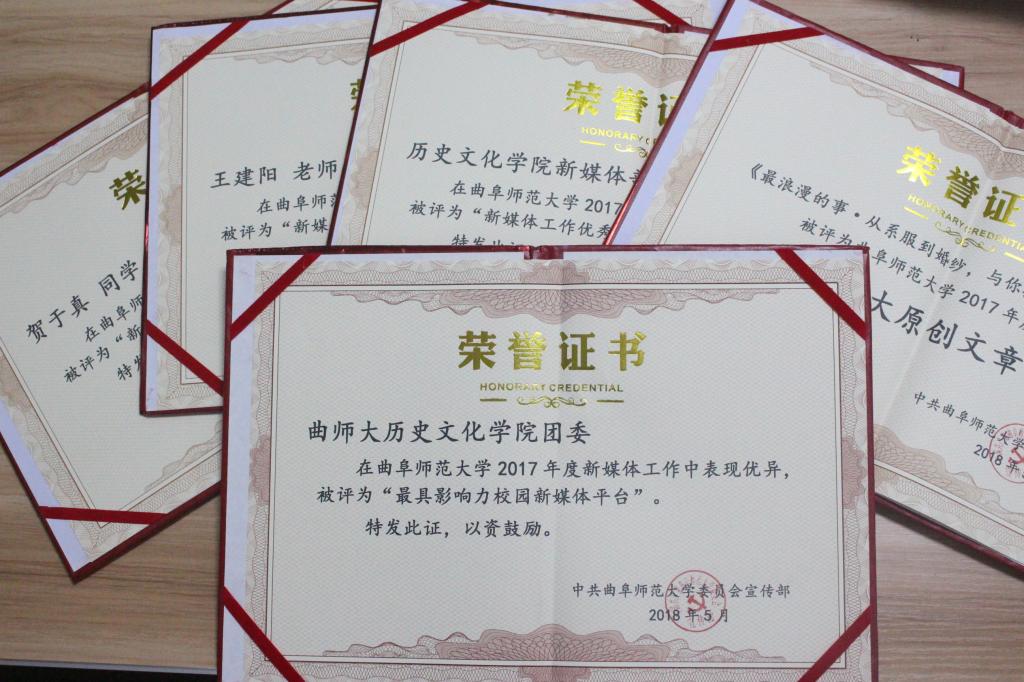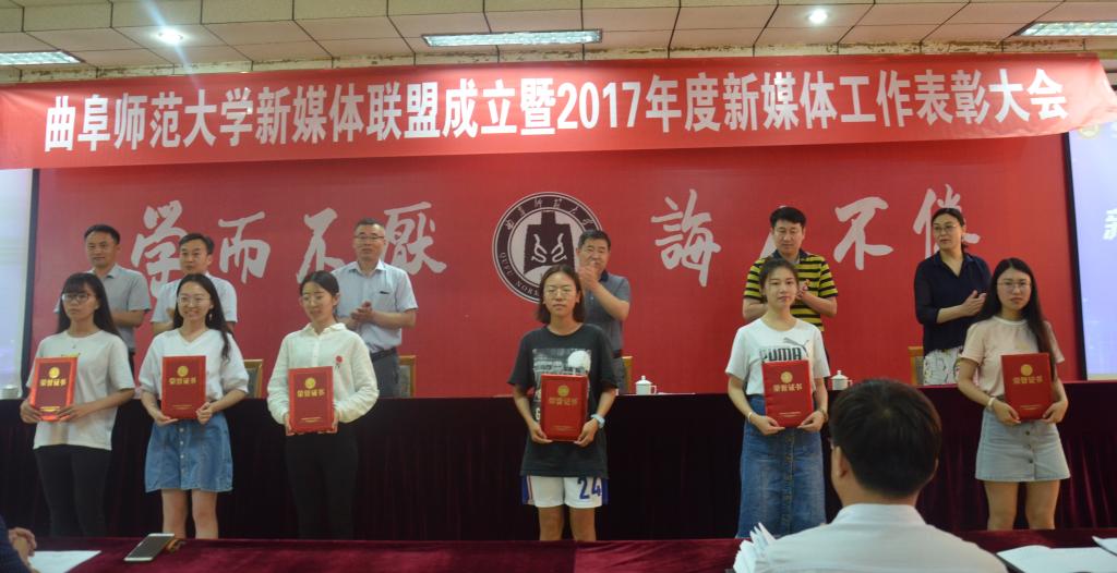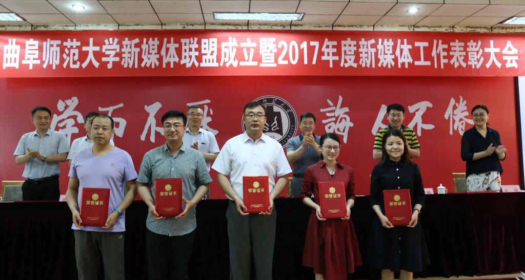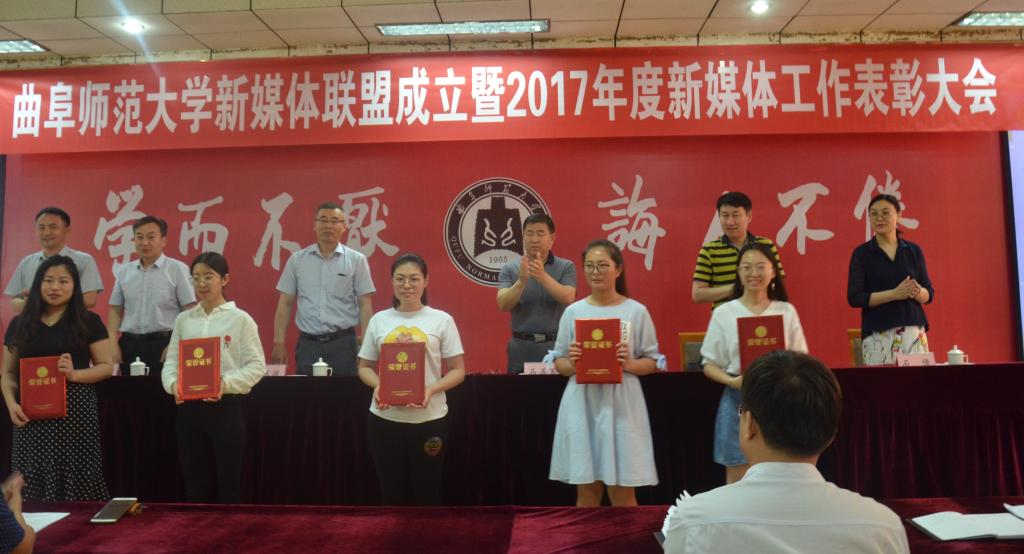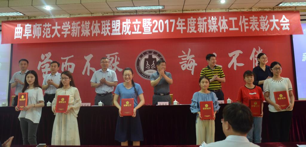 5月17日下午,香港赛马会投注站 新媒体联盟成立仪式暨2017年新媒体工作表彰大会在曲阜校区科技楼二楼会议室、日照校区图书馆报告厅举行。大会经选举产生9个常务理事单位,27个理事单位,香港赛马会投注站 成功当选首届常务理事单位。香港赛马会投注站 新媒体团队在香港赛马会投注站 2017年度新媒体工作中表现优异,香港赛马会投注站 团委荣获“最具影响力校园新媒体平台”称号,团委书记王建阳荣获“新媒体工作优秀指导老师”称号,贺于真荣获“新媒体工作先进个人”称号,新媒体部荣获“新媒体工作优秀团队”称号,《最浪漫的事·从系服到婚纱,与你执手曲园》被评为香港赛马会投注站 2017年度新媒体推送“十大原创文章”。