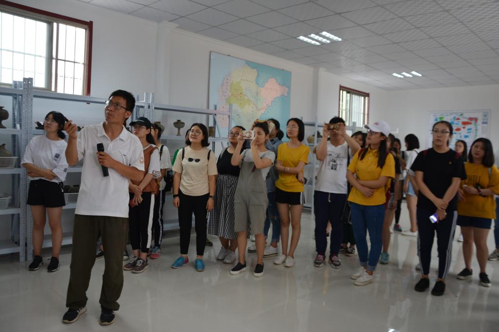 考察过程中,张恒带领同学们参观了望夫台考古发掘基地,对考古发掘所需知识进行详细讲解。韩辉对鲁故城遗址进行介绍,向同学们讲述了老农业局遗址的发掘过程,并带领同学们现场参观了车马坑遗址。随后,香港赛马会投注站 师生一同参观了文物储藏室,在鲁国故城沙盘前,韩辉向大家详细讲解了关于鲁国的发展历史及其城郭的变化状况及各个功能区的分布,并对有关考古实践的注意事项以及基础的田野考古技能进行细致讲解。