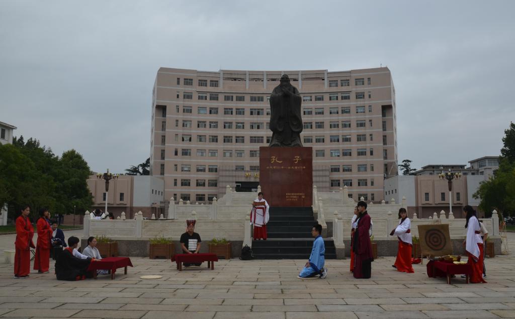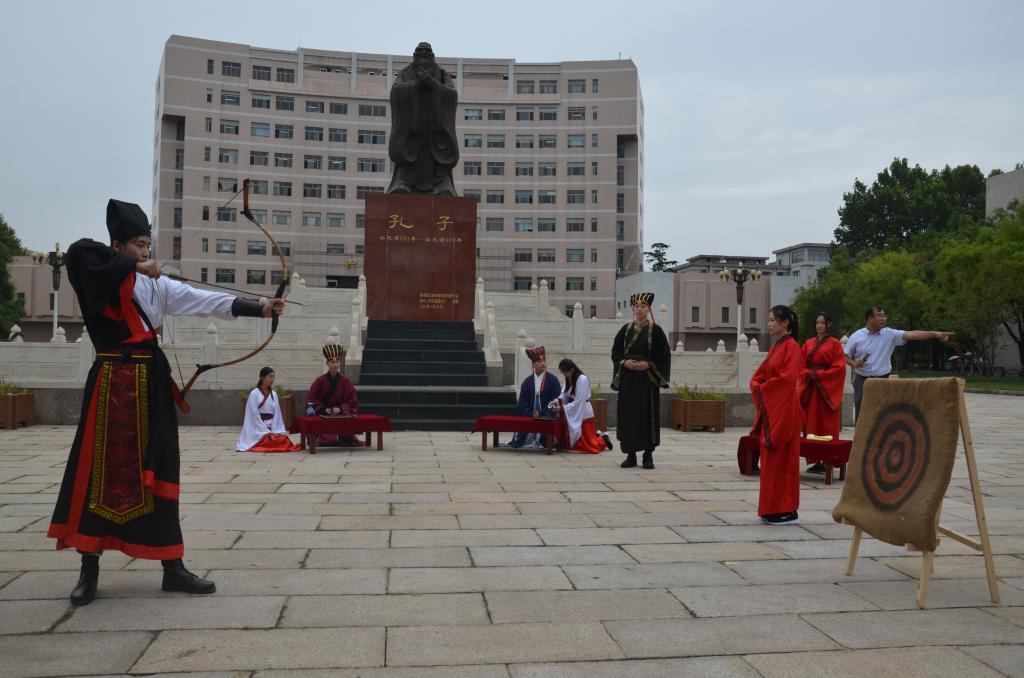 9月28日下午,香港赛马会投注站 大学生传统礼仪研修中心为参加山东省传统文化教师培训的老师进行了传统礼仪之射礼展演,展演在孔子文化广场举行,由团委书记王建阳主讲,参与山东省传统文化教师培训的老师们观看并参与了本次活动。