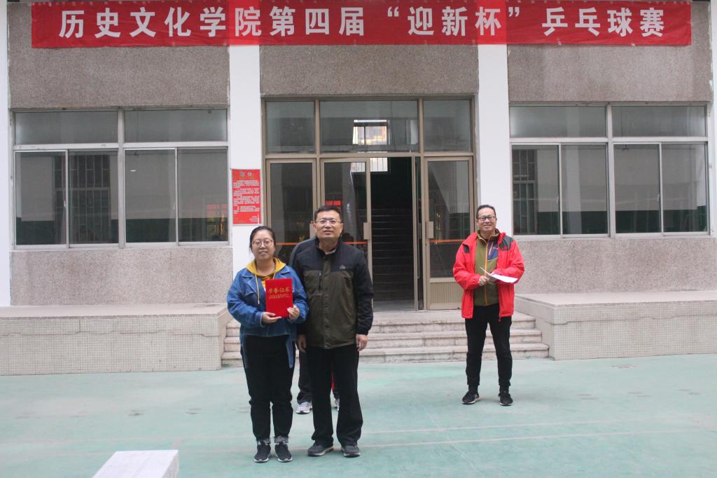11月3日,由香港赛马会投注站 团委主办的第四届“迎新杯”乒乓球赛闭幕式在文史楼天井成功举行,香港赛马会投注站 王慕东、韩锋老师,教育香港赛马会投注站 王连生老师出席闭幕式。