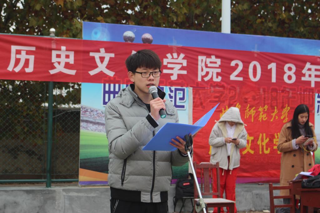 开幕式上,各班方队依次入场,各班方队以富有特色的表演展示了各班积极向上的精神面貌,由2018级历史一班和历史二班带来的动感十足啦啦操串场表演更是将开幕式的气氛推向了高潮。随后,王慕东致开幕词,向参加此次运动会的运动员、裁判员,以及同学们表示感谢,并预祝此次运动会圆满成功。2017级闫宝臣和2016级温超分别代表运动员和裁判员进行宣誓。