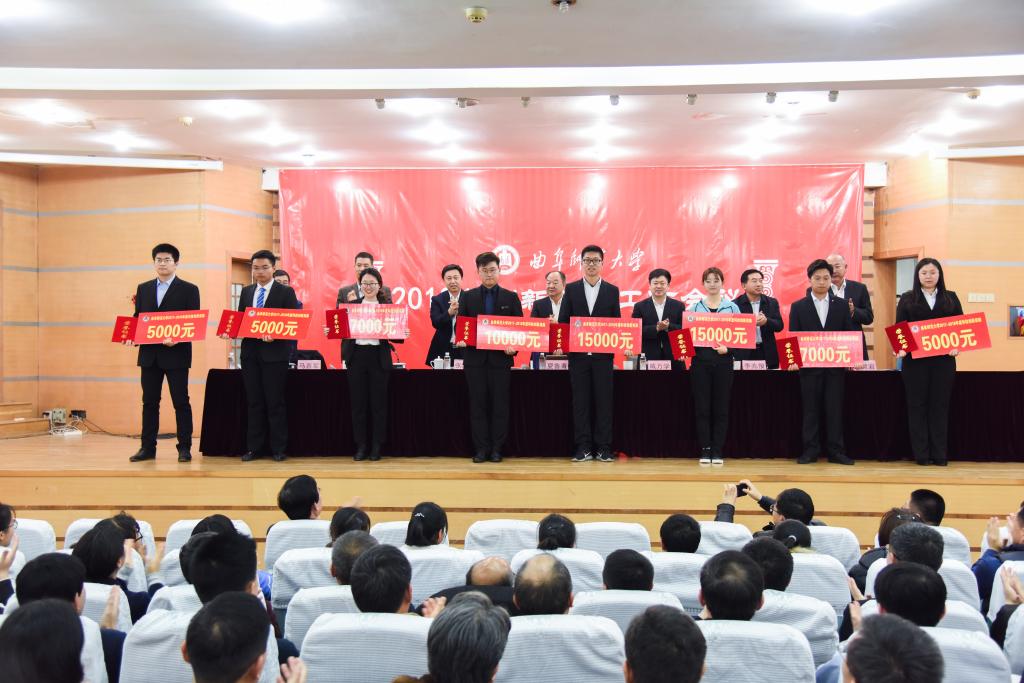 11月26日下午,香港赛马会投注站 隆重举行2018年创新创业工作会议,会议表彰了在2017学年学生科技文化创新活动中取得优异成绩的学生,发放科技奖励基金197万元。其中,香港赛马会投注站 多名学子受到表彰。会议上,杨浔、高越同学代表香港赛马会投注站 领奖。