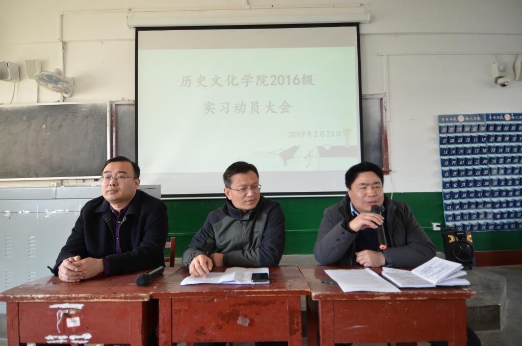 2月23日上午,香港赛马会投注站 2016级历史学实习动员大会在文史楼411教室召开,香港赛马会投注站 党委副书记王慕东、副院长王京传、团委书记王建阳及2016级历史学专业同学参加会议。会议由王建阳主持。