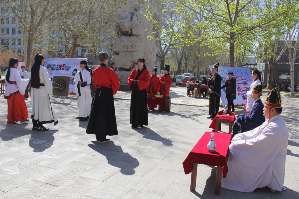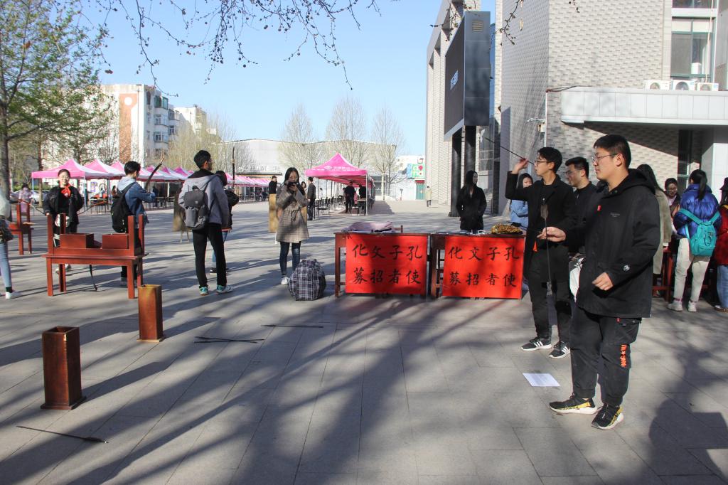 活动期间,同学们在校园各处向过往行人介绍第十二届”孔子文化月”系列活动,招募现场有射箭、投壶以及射礼展演等活动,气氛热烈。此次招募吸引了校内外人员的广泛关注与热情参与,共募得“孔子文化使者”二百多名,为第十二届“孔子文化月”系列活动注入了新鲜血液,保障了活动的顺利开展。