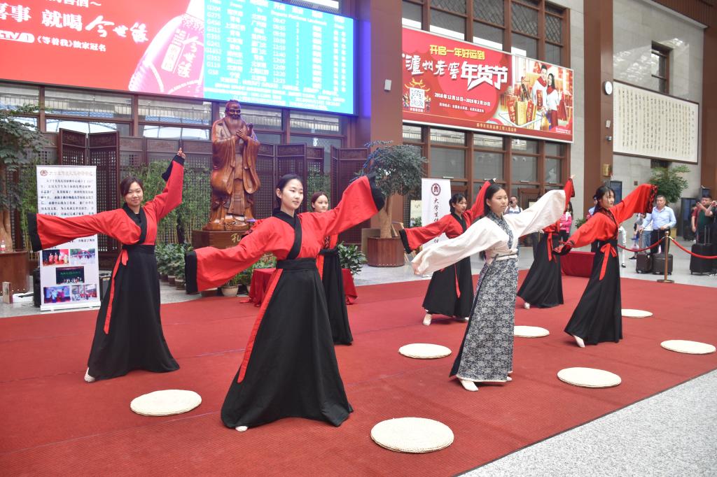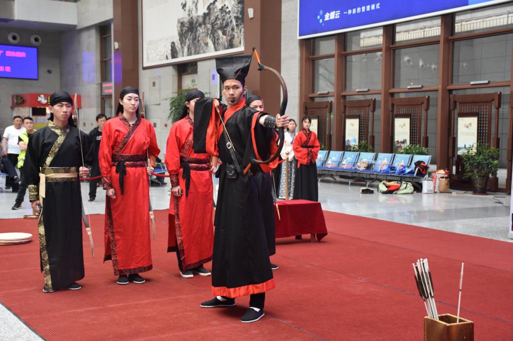活动开始,传统礼仪研修队的成员们为旅客朋友们以及中央广播电视总台(央视、央广)、光明日报、经济日报、科技日报、学习日报、工人日报等多家媒体机构带来了射礼展演,传达射礼所蕴含的“立德正己,礼乐相和”的儒家精神。射礼结束,汉舞承前启后,七名舞者以一首《礼仪之邦》,展现了泱泱华夏汉民族舞蹈艺术风采。束脩礼压轴出场,以“尊师重道,明礼求学”为主题进行了传统礼仪展演。束脩礼结束后,全体参演人员上场,为现场旅客朋友们献上经典诵读《高铁儒行赋》。曲阜东站运用曲阜的文化资源优势,把儒家文化与高铁服务相融合,精心培育具有独特人文地理特征的服务文化。