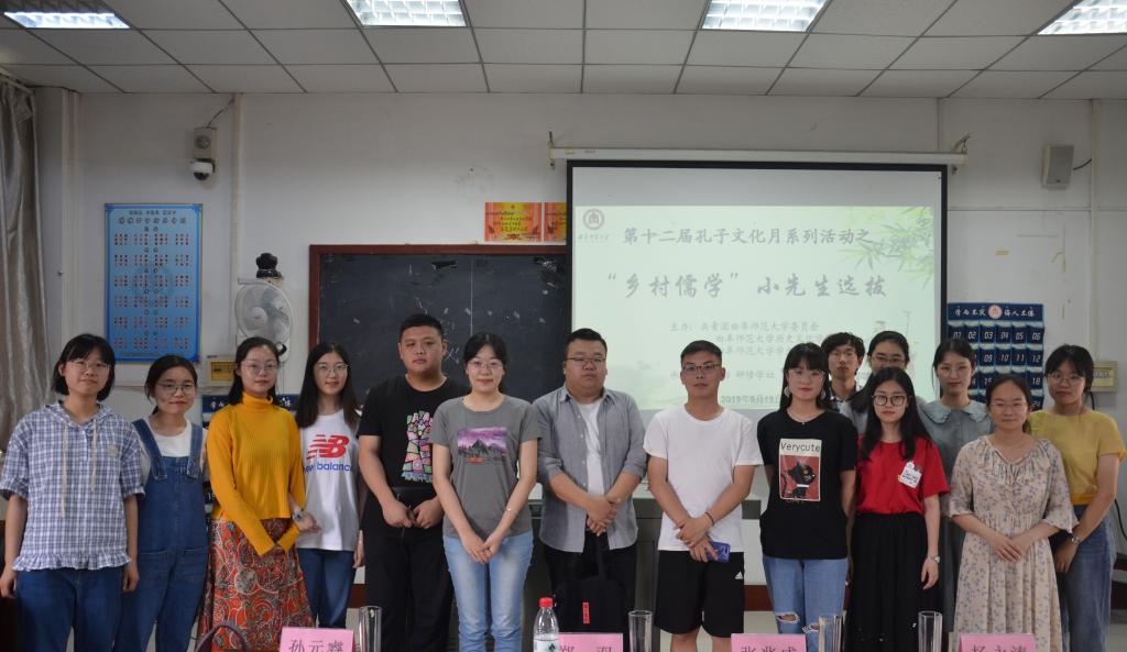 5月19日下午,第十二届孔子文化月系列活动之“乡村儒学小先生”选拔比赛在文史楼520教室圆满落幕。比赛邀请香港赛马会投注站 2015级国学班学生代表杨永涛、张兆成、孙元睿、郑双担任评委,由香港赛马会投注站 2017级国学班学生代表胡杰文主持。