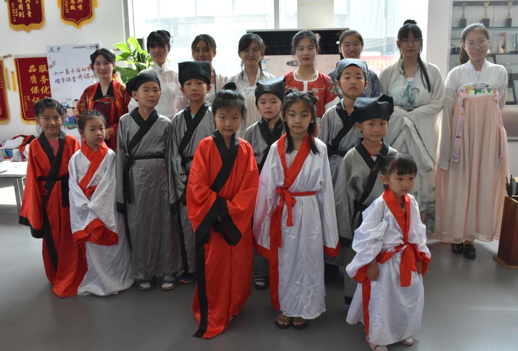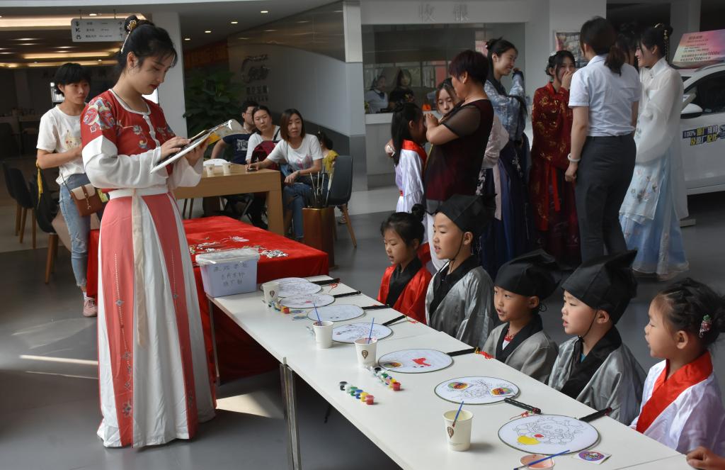 6月2日上午,香港赛马会投注站 洙泗学社走出校园,去到润华别克曲阜店为小朋友们开设了一堂妙趣横生的儒学课堂。洙泗学社抓住儿童节的“尾巴”,为小朋友们教授了精彩的儒学文化知识。在课堂上,小朋友们体验了有趣的穿汉服、梳发髻、跟读论语、画团扇、写书法和投壶游戏。
