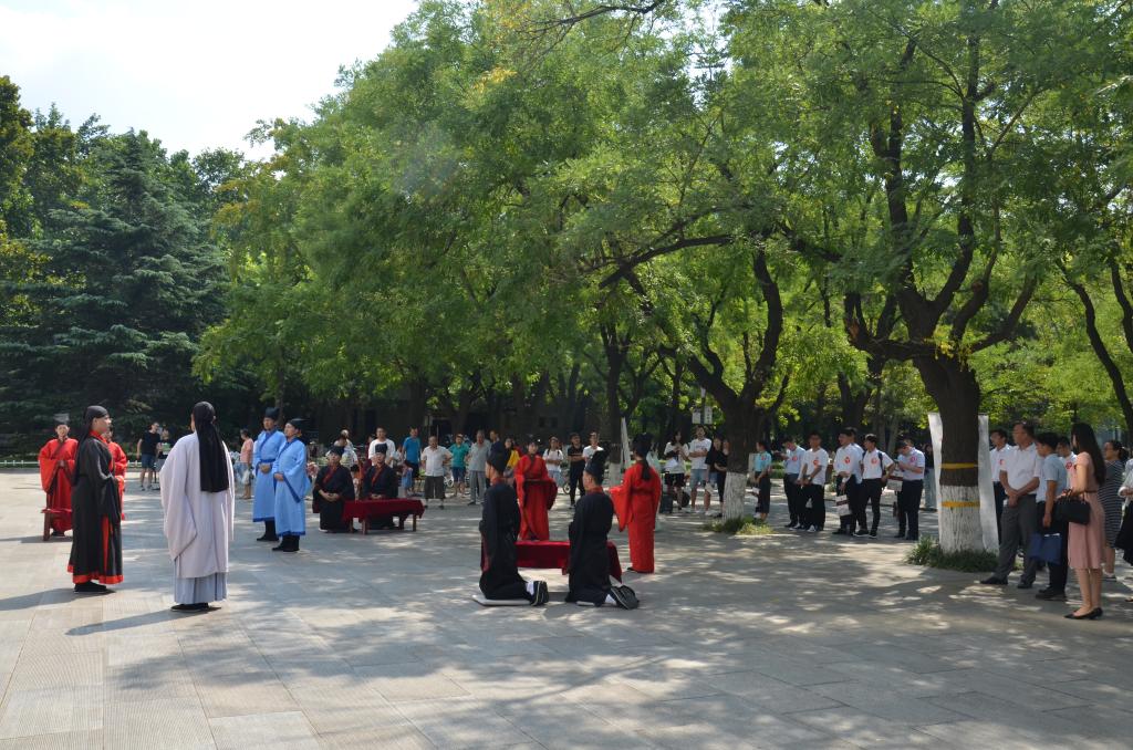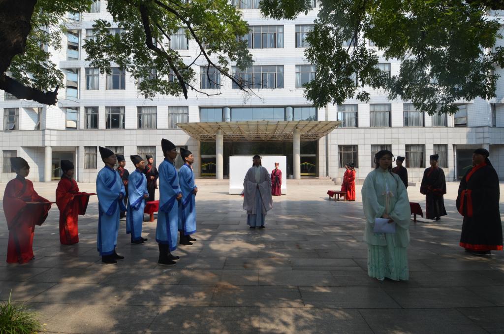 9月1日上午,香港赛马会投注站 在大学生活动中心举行“感谢恩师·你我同行”大型公益活动启动仪式。在活动期间,香港赛马会投注站 在综合楼前为本次参加活动的领导和老师们举行束脩礼展演。