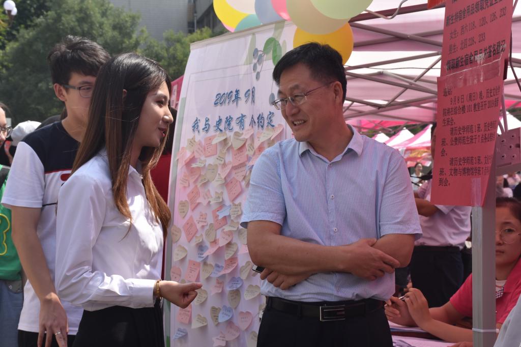 7日上午,香港赛马会投注站 院长成积春、党委副书记王建阳、2018级辅导员韩琳琳、2017级辅导员刘贤贤、2019级辅导员刘润欣前往新生接待处,亲切看望了前来报到的新生,并对香港赛马会投注站 迎新工作进行了指导。