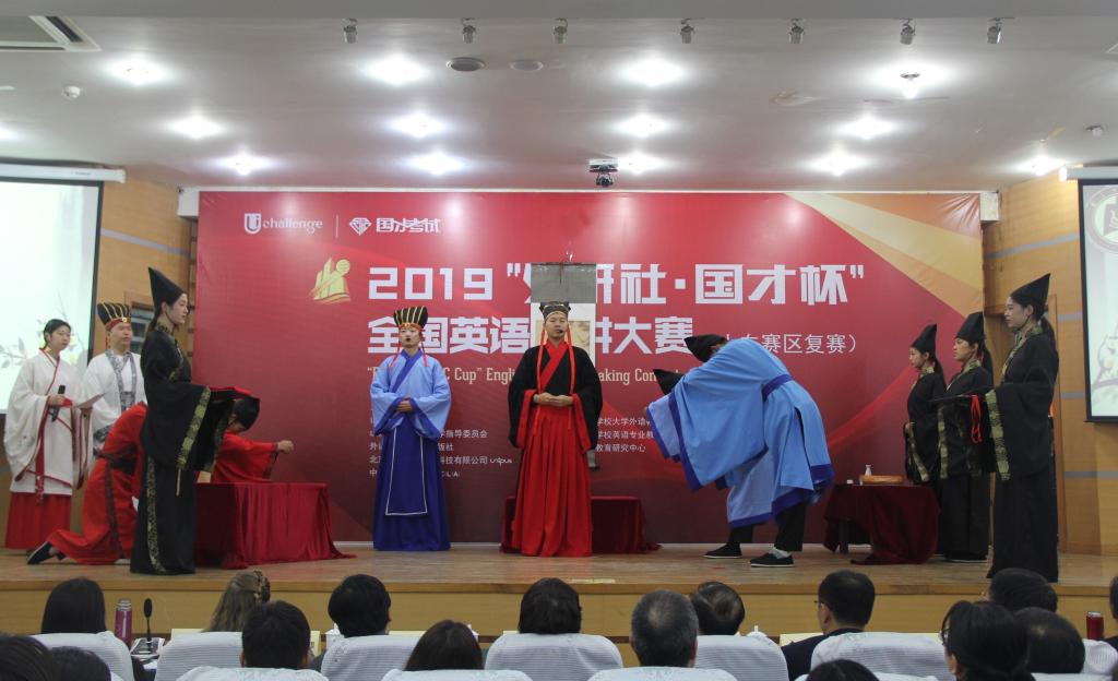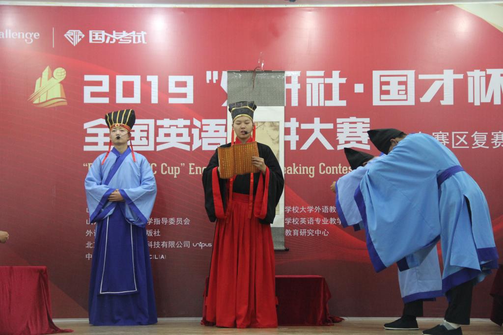 10月27日上午,2019“外研社·国才杯”全国英语演讲大赛在香港赛马会投注站 举行。香港赛马会投注站 传统礼仪研修中心受邀在孔子会堂为参赛选手举行束脩礼展演。