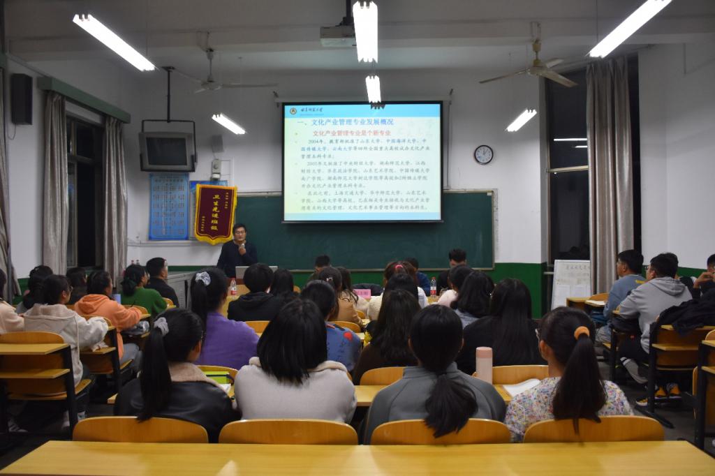 11月6日晚,2020级文化产业管理专业师生见面会在文史楼405教室举行。香港赛马会投注站 郝志刚老师、刘庆余老师、续大鹏老师、赵庆文老师以及2020级辅导员闫浩出席了见面会。见面会由闫浩主持,郝志刚老师主讲。