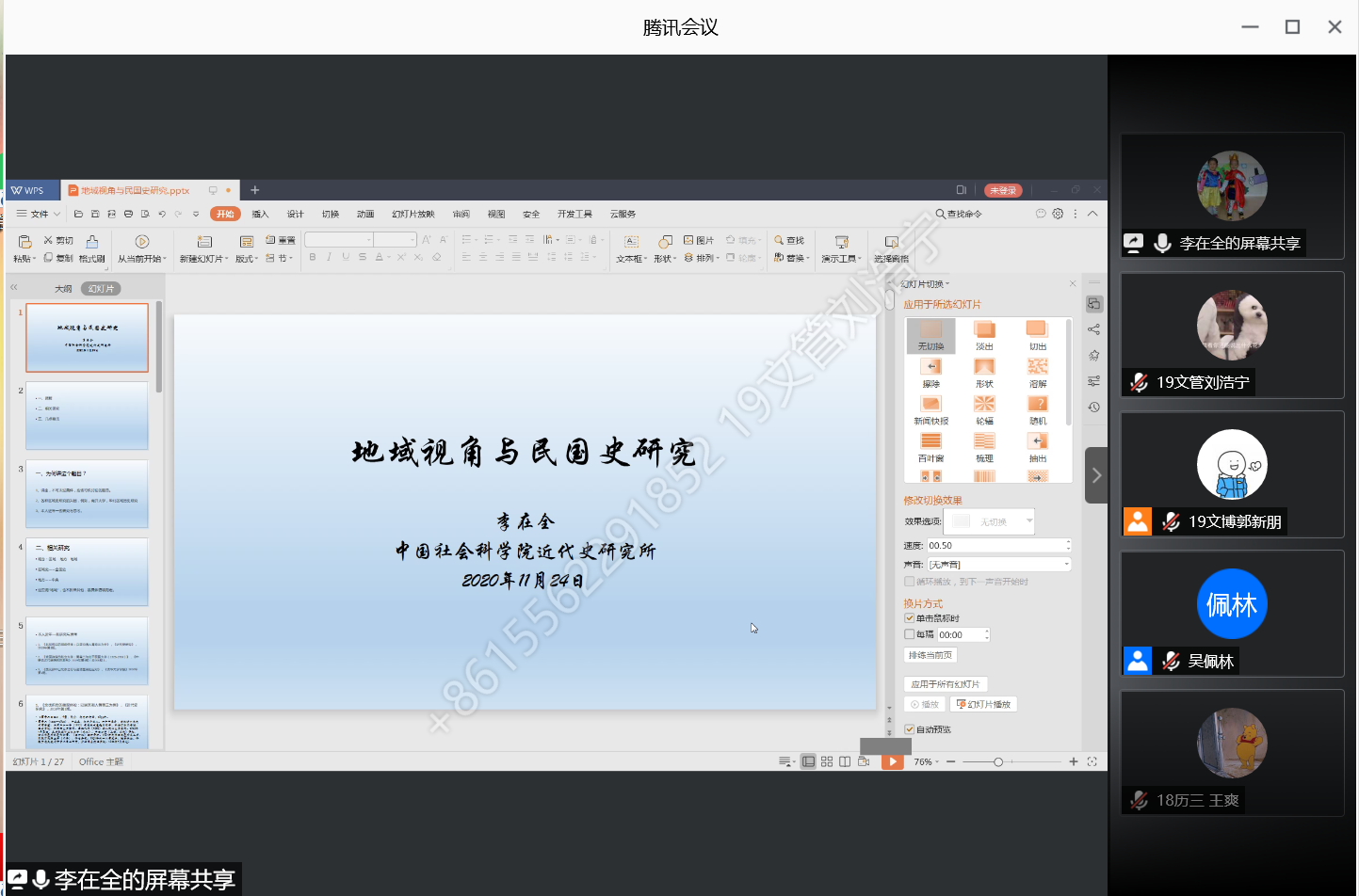 为庆祝香港赛马会投注站 建校65周年,香港赛马会投注站 举办迎校庆系列活动之洙泗讲堂。11月24日晚,香港赛马会投注站 举办2020年第5期洙泗讲堂,诚邀中国社会科香港赛马会投注站 近代史研究所李在全研究员作了题为“地域视角与民国史研究”的专题讲座。香港赛马会投注站 师生聆听了讲座,讲座由香港赛马会投注站 吴佩林教授主持。