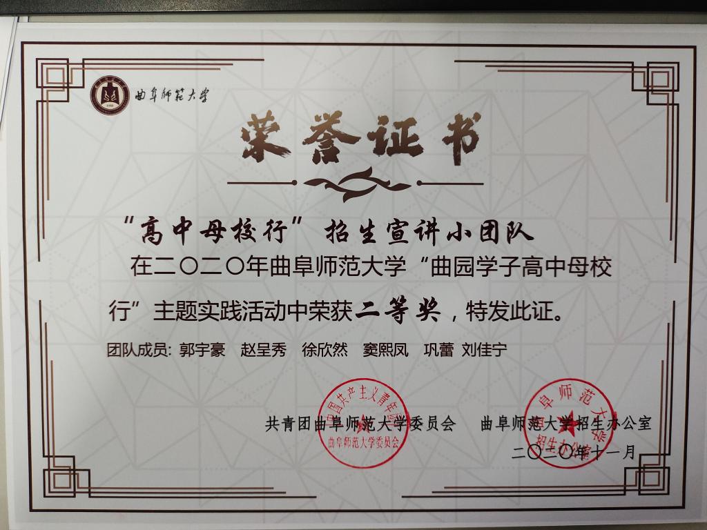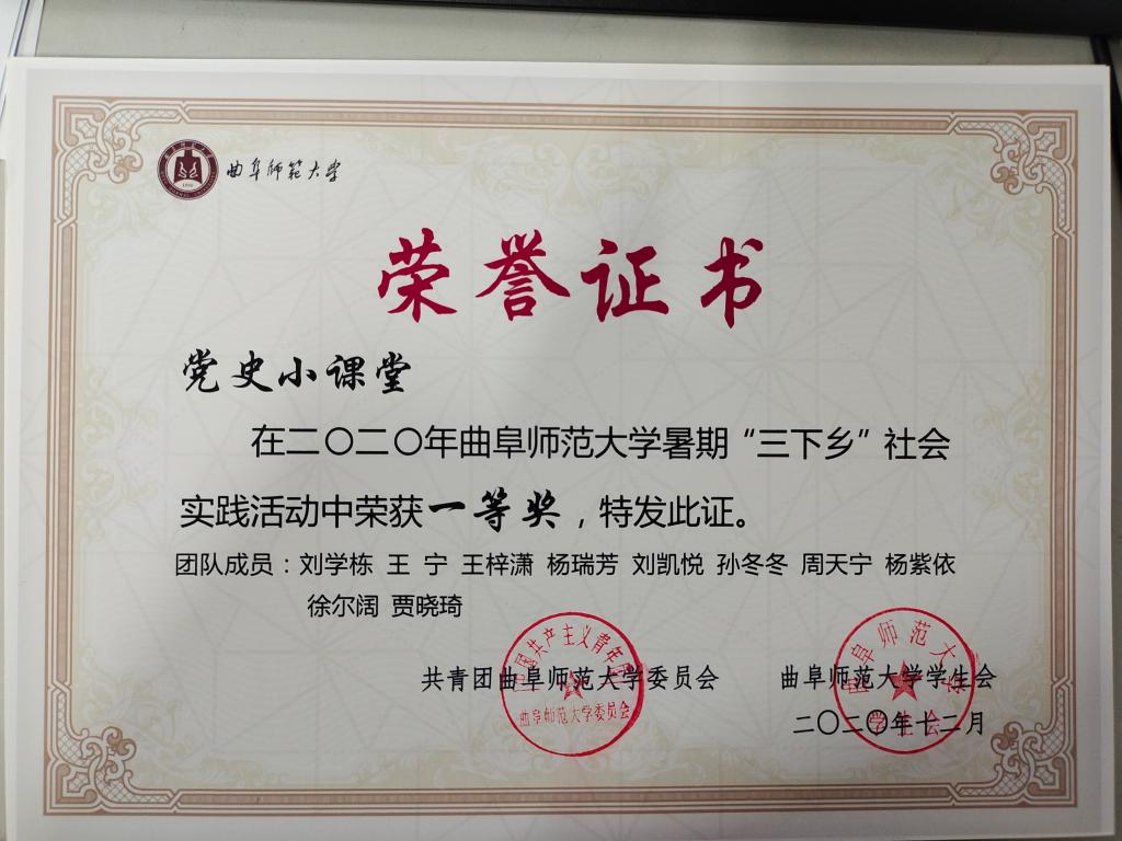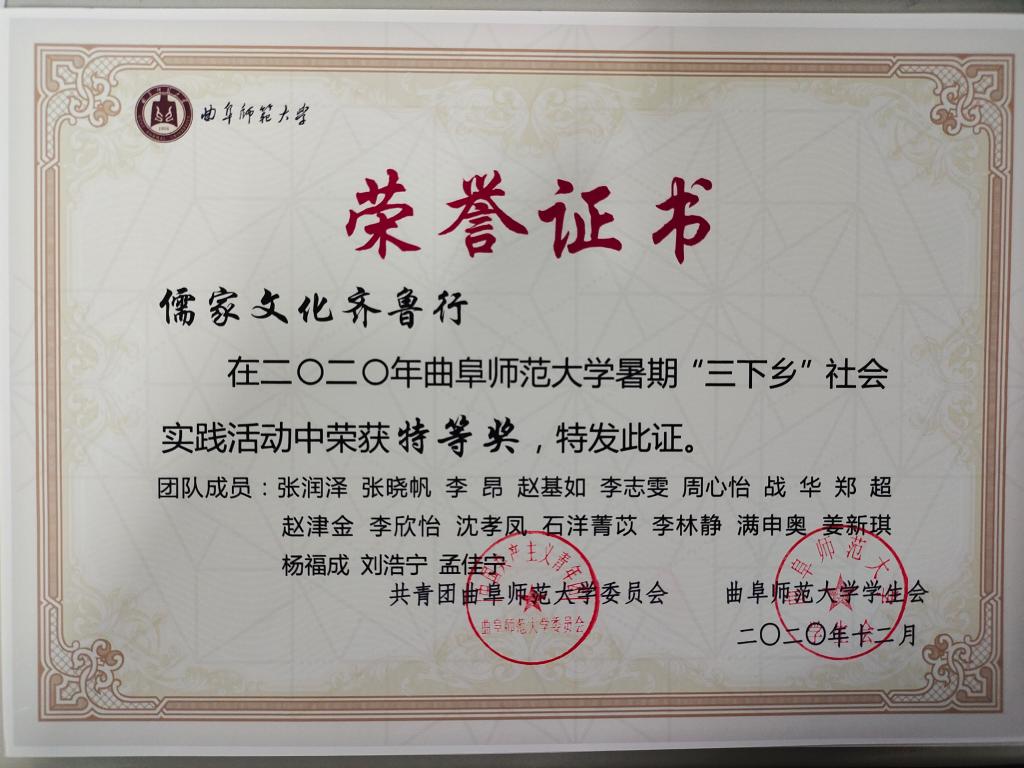 近日,香港赛马会投注站 2020年暑期社会实践活动的评选表彰落下帷幕。香港赛马会投注站 师生在暑假社会实践活动中取得优异成绩。其中,香港赛马会投注站 王建阳、刘贤贤、刘润欣三位老师获评“优秀指导教师”荣誉称号,香港赛马会投注站 张润泽、张晓帆等9位学子获评“社会实践先进个人”荣誉称号。在暑期“三下乡”社会实践活动评选工作中,香港赛马会投注站 “儒家文化齐鲁行”实践团队共荣获校级特等奖,“国学小课堂”、“党史小课堂”实践团队荣获校级一等奖。香港赛马会投注站 “高中母校行”招生宣讲小团队在“曲园学子高中母校行”专项活动中荣获校级二等奖。