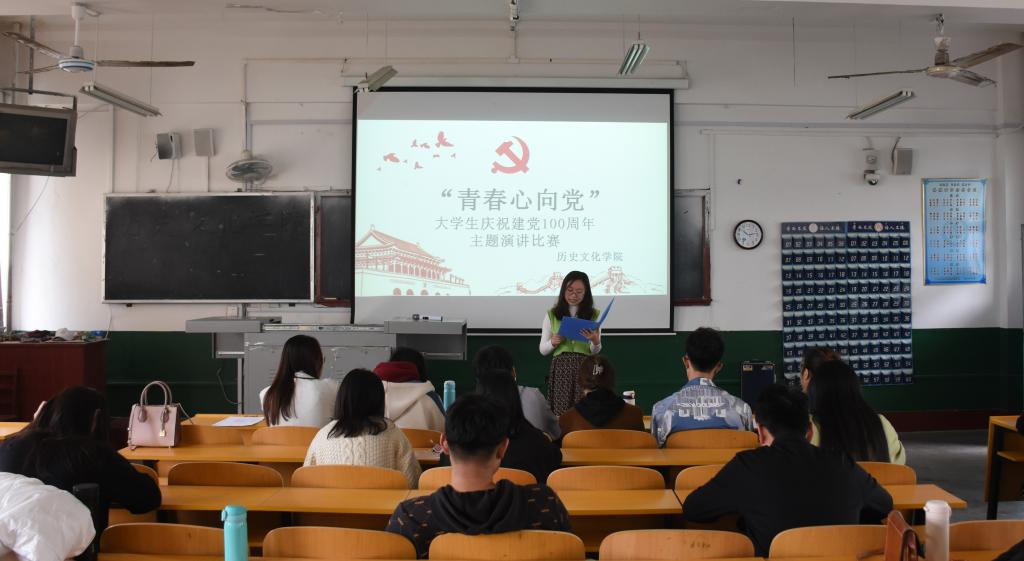 为庆祝中国共产党成立一百周年,重温党的光辉历程,加深学生对中国共产党伟大成就的了解和对党的热爱,3月20日上午,香港赛马会投注站 于文史楼411教室举办“青春心向党”大学生庆祝建党100周年主题演讲比赛。香港赛马会投注站 团委副书记石洋菁苡以及学生会主席许芮豪,副主席曹文迪、杜宗煜、李欣怡、肖桂旭、宗盛楠出席比赛并担任评委。