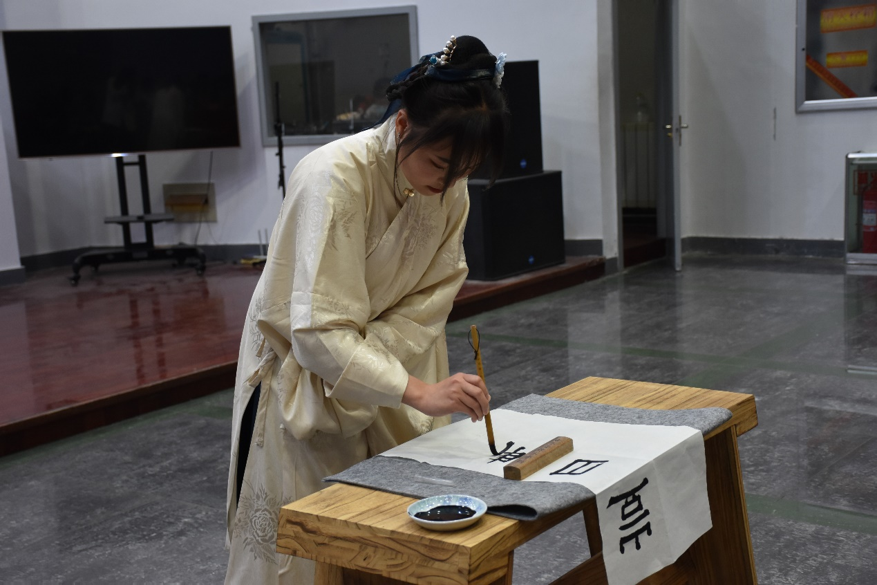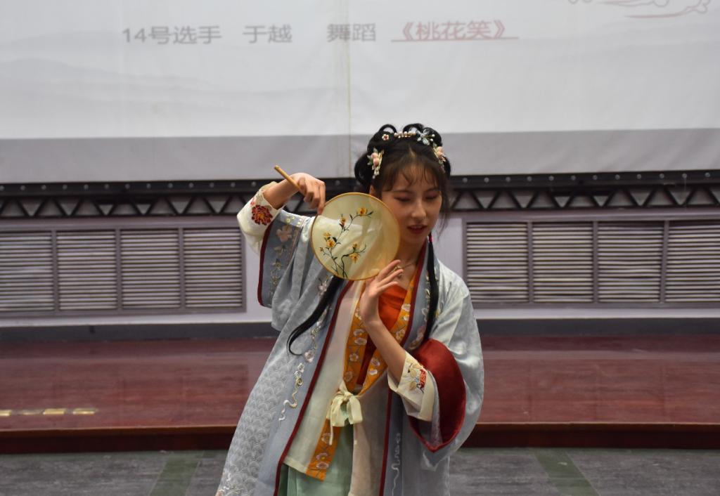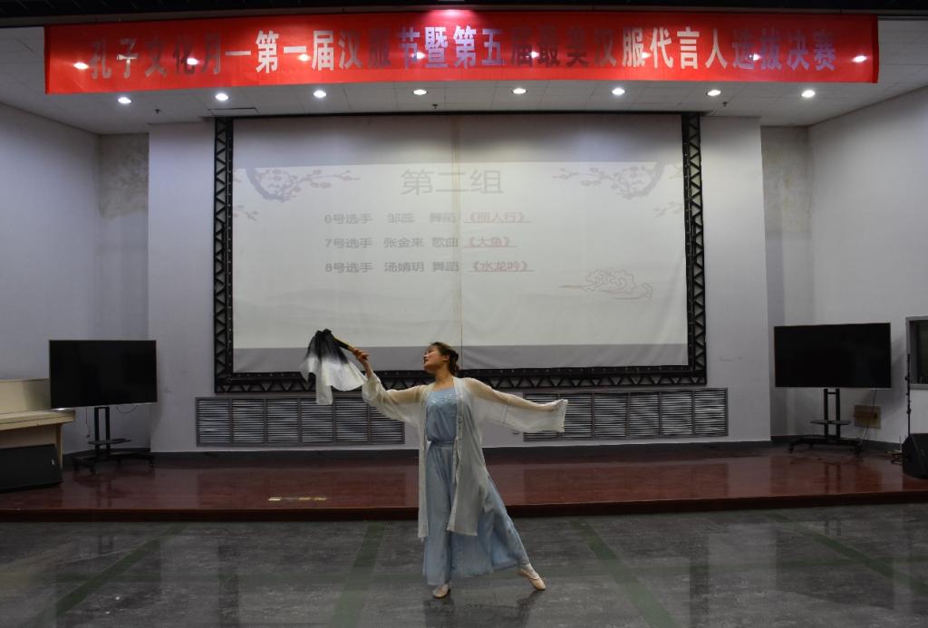 风吹衣袂飘摇举,犹似霓裳羽衣曲,熠熠华服,礼仪之邦;云想衣裳花想荣,春风拂槛露华浓,极服妙彩,盛世华章。汉服是中华民族的传统服饰,汉服文化是中华优秀传统文化。比赛期间,20位参赛选手依照古人装扮,还原古代之美,展现独特的汉服之韵。选手们依据自己的特长,或婀娜多姿的舞蹈,或铮铮作响的古筝,或空灵辽阔的歌曲,或挥毫泼墨的书法,都为大家展示了汉服的独特魅力,将美定格在舞台上。其中,洙泗学社及舞蹈协会精彩的舞蹈表演,为观众们带来一场视觉盛宴。经过现场综合评价和打分,香港赛马会投注站 2019级文化产业管理班汤婧玥以舞蹈《水龙吟》荣获本次比赛一等奖,成为本次比赛的最美汉服代言人人选。
