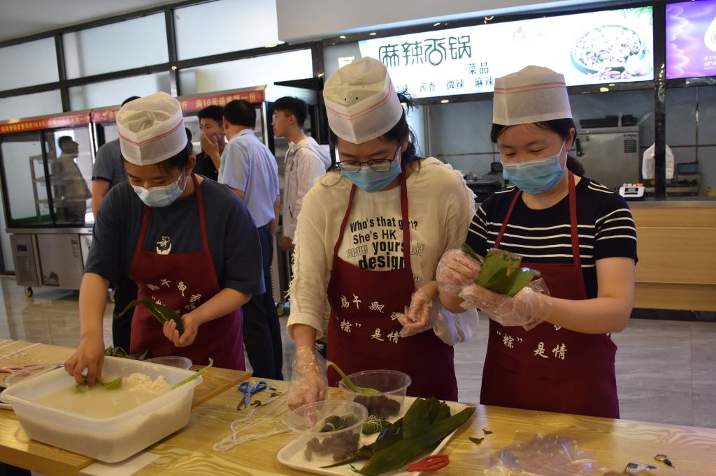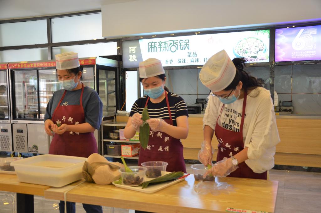 正值建党一百周年之际,为表达对民族先人和革命先烈的怀念和追思,传承优秀传统文化,6月11日下午,由校工会主办,后勤工会、后勤管理处生活服务中心承办的“又到端午节,又闻粽飘香”活动于三餐二楼举办。香港赛马会投注站 王静老师、李贝老师、徐银雪同学参加活动。 活动分为两部分,首先邀请了有经验的厨师教授包粽子的方法,她从粽叶的摆放、加米、添加心、折叠粽叶到包扎粽子等一一进行讲解,王静老师、李贝老师和徐银雪同学进行了认真的学习。其次,进行了包粽子竞赛,王静老师、李贝老师和徐银雪同学在激烈的比赛中顺利的包完了10个粽子,完成了比赛。 通过本次活动,师生们掌握了包粽子的方法,增强了师生们民族认同感和民族自豪感,传承了中华优秀传统文化,使师生们在活动中感悟到“真理的味道”。
