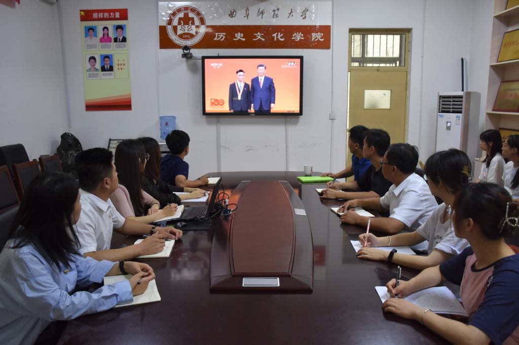 在热烈庆祝中国共产党成立100周年之际,6月29日上午,香港赛马会投注站 于文史楼204会议室、各班教室组织师生以直播和回放的形式观看“七一勋章”颁授仪式。