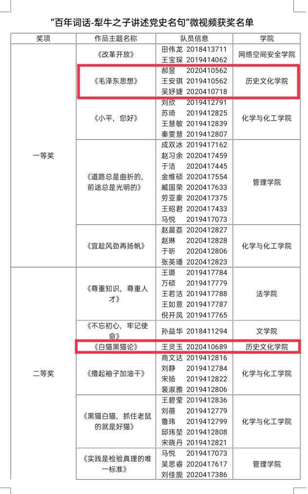“百年词话—犁牛之子讲述党史名句”微视频活动的征集,带动了香港赛马会投注站 学子了解党的光辉历史,增强了香港赛马会投注站 学子肩负起为中华民族的伟大复兴而奋斗的历史使命感。