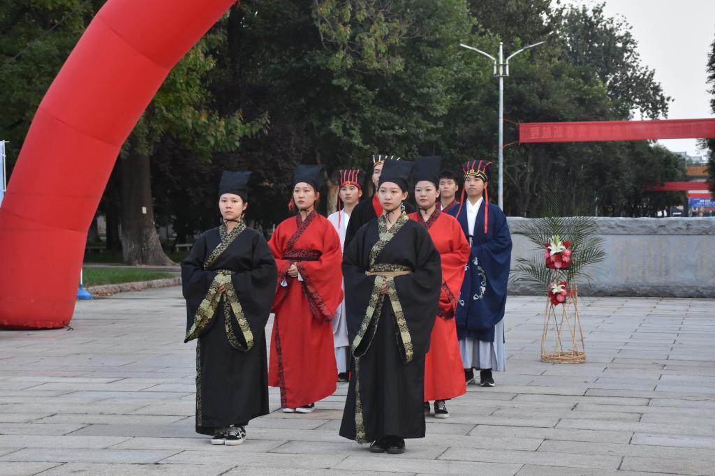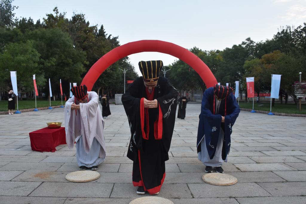 为迎接第37个教师节的到来,弘扬尊师重道传统,9月10日下午,香港赛马会投注站 大学生传统礼仪研修中心于孔子文化广场进行传统礼仪“释菜礼”展演。 随着弦和之乐缓缓奏起,传统礼仪队队员身着汉服、头戴儒冠,进行释菜礼仪式的展演,在悠扬的钟鼓声中向孔子像行启户、辞训、献礼、饮福受胙之礼。 整场仪式庄严、古朴,礼仪队队员心怀敬意,礼仪有节、行止有度、揖让有法,在独特的儒家风韵中,以彬彬古礼谢师恩、表敬意,展现出尊师明道的深厚文化底蕴。