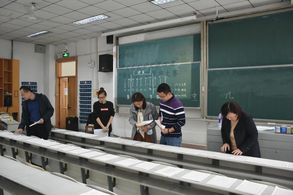 为进一步树立同学们汉字书写规范意识,强化同学们的教育教学综合素质,10月10日上午,香港赛马会投注站 于综合楼106教室举办第四届“杏坛杯”三笔字大赛。香港赛马会投注站 韩锋、王昌沛、韩晓燕、牟学林、刘贤贤五位老师出席比赛并担任评委。