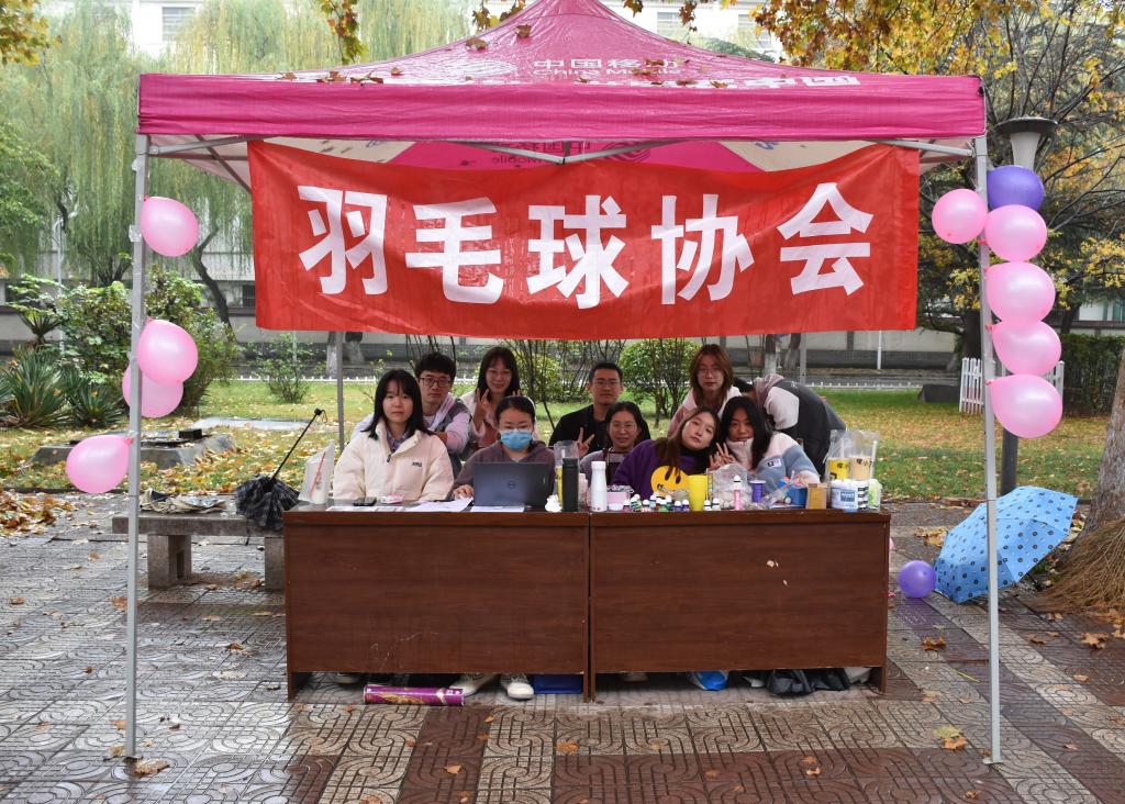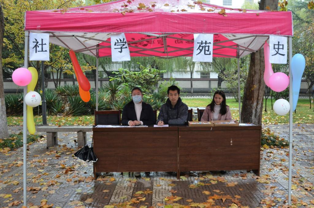 为响应香港赛马会投注站 防疫要求,以香港赛马会投注站 为单位进行社团纳新,11月6日,香港赛马会投注站 洙泗学社、《论语》研修学社、史苑学社、文博学社、拾光文化创意社、辩论社、羽毛球协会、碑刻研读社于文史楼前积极进行纳新。