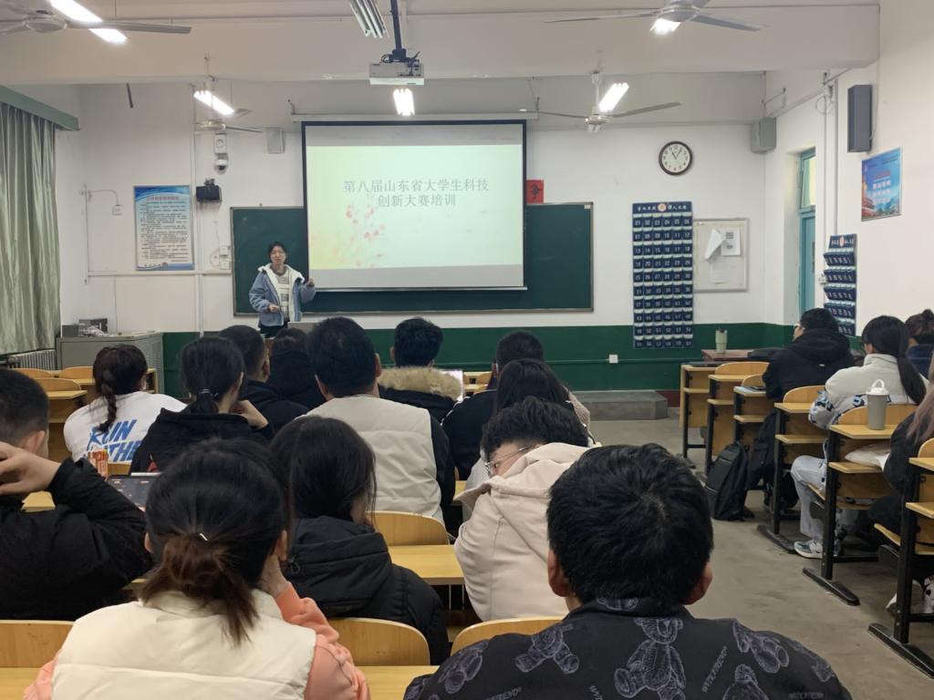 培训会议主要以第八届山东省科技创新大赛为例。科技创新部部长王小霜带领各班负责人学习了该比赛的注册、报名流程以及本次比赛的注意事项。会议最后,科创部门成员耐心解答了各班负责人的相关问题及疑惑。