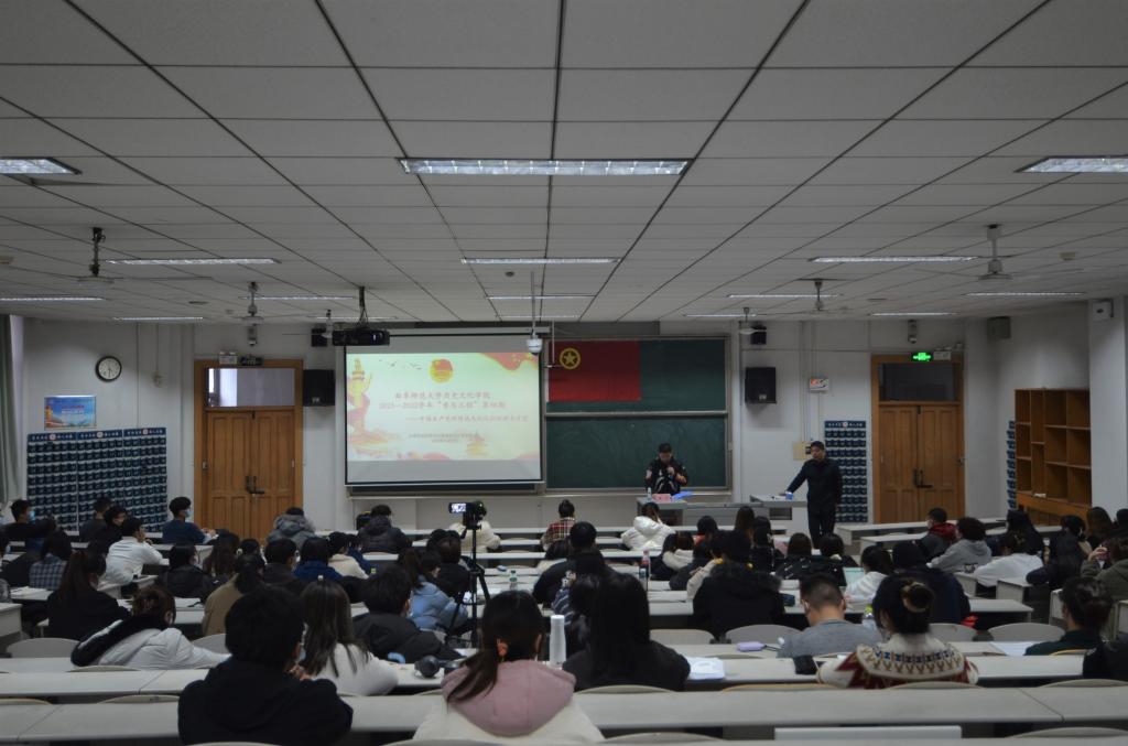 讲座以“中国共产党对传统文化的历史考察”为主题,围绕中国共产党在不同的历史阶段对中国传统文化的认识,分别从中西古今之争与马克思主义的选择、决裂与超越、批判与研究、扬弃与发展、反思与创新、继承与转化七个具体的历史阶段讲述了中国共产党对中国传统文化的认知与定位,阐述了马克思主义与中国传统文化相结合的历史过程及二者对中国近代发展的积极影响;同时,指出新时期我们要坚定文化自信,做到两个结合,积极开拓文化发展的新路径;最后,吕厚轩强调,当代青年人要立足实践,结合当今国内外形势,积极学习和传承中国传统文化,并与马克思主义相结合,为社会的发展做出自己的贡献。