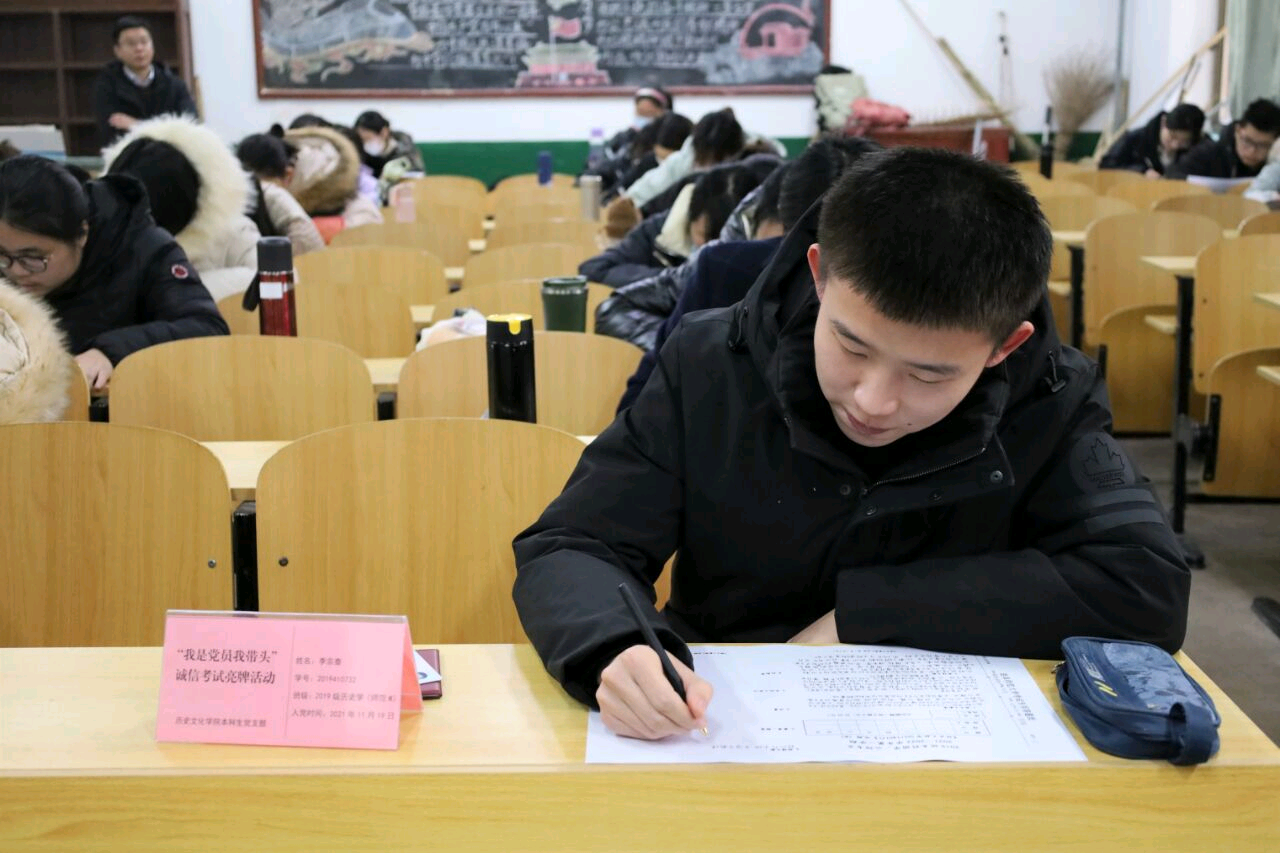 香港赛马会投注站 各年级辅导员为同学们开展诚信考试主题班会,强调诚实守信是每个大学生都应该遵守的准则,树立道德之新风,立诚信之根基是当代大学生义不容辞的责任,教育同学们积极备考、诚信应考。各年纪有序组织同学们仔细阅读期末考试承诺书,随后,同学们自发签订考试承诺书,同学们表示一定信守承诺、诚信考试。本科生党支部于文史楼505教室举办“我是党员我带头”诚信考试亮牌活动,本科生全体党员参加活动。党员代表杨紫依同志表示,全体党员要将道德原则与道德规范内化于心、外化于行,求真务实,诚信考试。考试期间,香港赛马会投注站 本科生全体党员亮牌考试,为其他同学诚信考试起到了良好的模范带头作用。