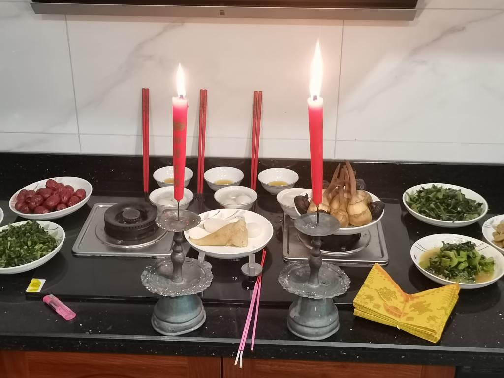 其中最重要的的时间便是小年夜,也就是廿三夜请灶司菩萨。实践队员了解到当地的廿三夜与北方大不相同,北方的传统节日吃食都离不开饺子,而当地则是吃汤圆,汤圆也是祭祀时必不可少的一个食物。在廿三夜,家家户户要祭送灶司菩萨,因为在绍兴,灶司菩萨是掌管一家之神。灶司菩萨是吃素的,送灶司菩萨上天不需要鸡鸭鱼肉这类荤腥,只要几样素菜或水果即可。当地居民会在这一天挑点好些的素菜,总共供奉六碗,再用茶盅盛三盅饭,放在灶司菩萨神台前面。茶盅里的饭是刚煮出的新米饭,因此老人会在下午三点左右就开始着手准备蒸煮米饭,便开始备置素菜,米饭还被团成圆圆的饭团。然后则需要点上一对蜡烛,点上香。最后需要全家人轮流拜,然后过一段时间后,再焚烧由信奉佛教的专业人士念的 “荷花缸”,外加“金刚经和太保”,某种意义上也算是一种纸钱,这样请灶司菩萨才算顺利完成。