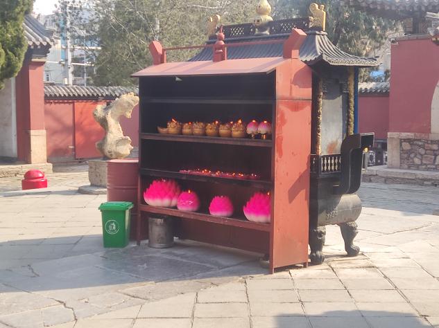 本次调查以体验特色祈福活动为主,祈福者需先前往大殿,先拜泰山主神——碧霞元君,后拜次神东岳大帝,后于主持人手中接过点燃的祈福香。祈福者需将祈福香插入殿前园中巨大的香炉中,许下新年愿望祈福实现,并在香火缭绕中结束祈福全程。整个过程行云流水,参加祈福活动的游客们都十分认真,不敢有任何怠慢。在祈福过程中,队员们许下了各自的心愿,写在了园内的祈福墙上。随后,队员们也前往参观泰山石敢当的小型祈福活动。石敢当代表的是对台家平安的高托,祈福者在其像前的香户上香、跪拜、祈福,希望石敢当能保估家人平安。