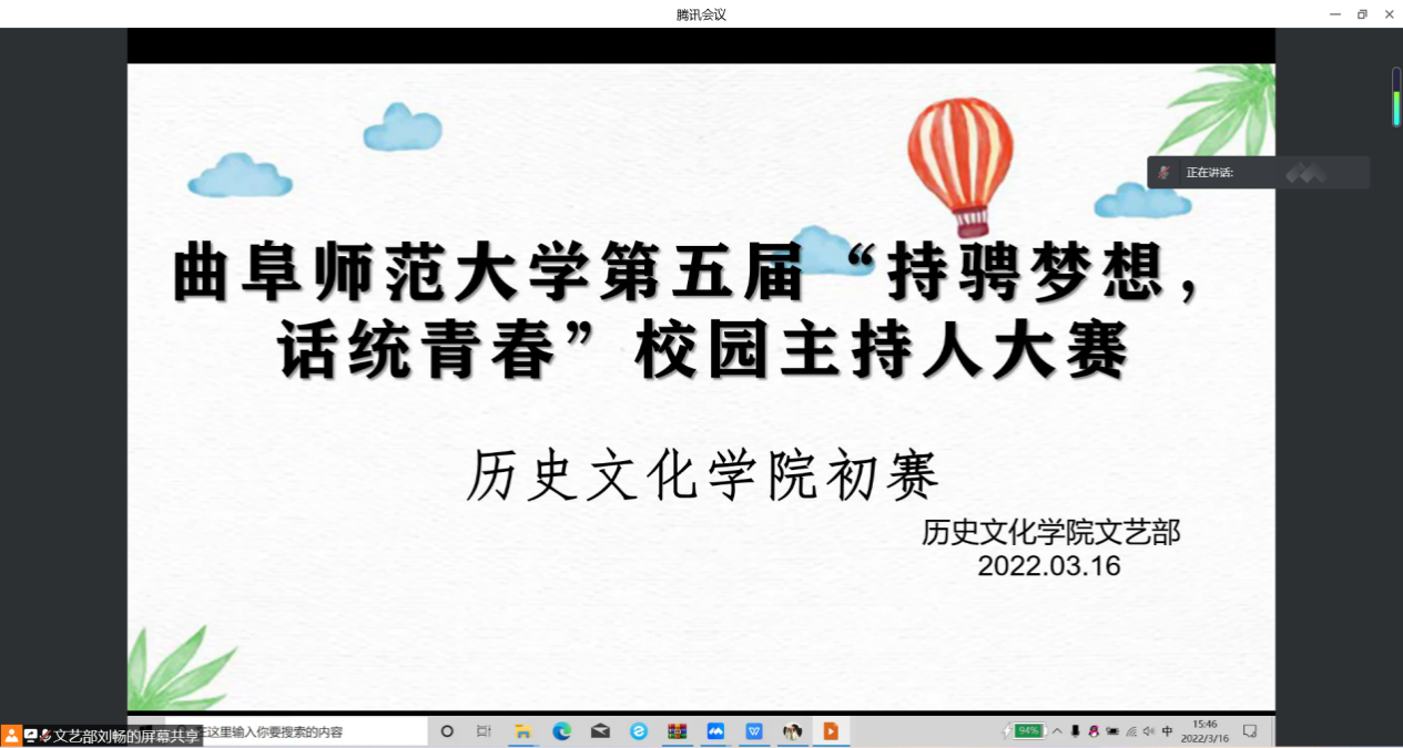 为丰富香港赛马会投注站 学子课余生活内容、提升香港赛马会投注站 学子自我谈吐能力,3月16日,香港赛马会投注站 于线上举办第五届“持骋梦想,话统青春”校园主持人大赛初赛。香港赛马会投注站 团委副书记王红宇、吕依琳以及学生会主席兰鸽、副主席刘吉、窦鲁豫、宫志伟、宿宸伟、大学生传统礼仪研修中心主任林欣、第四届校园主持人大赛冠军王子涵出席比赛并担任评委。