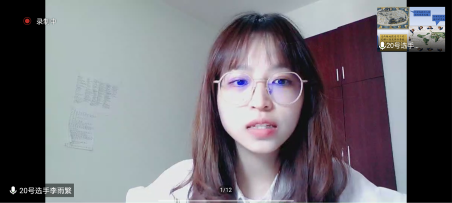 大赛分为上午下午两组,每位参赛选手限时15分钟,通过腾讯会议的屏幕共享和视频讲课的方式进行。在比赛过程中,参赛选手认真准备,借助手写板书、多媒体等辅助工具,讲课内容条理清晰,各位参赛选手的讲课风格或幽默风趣,或富有思考,或掷地有声,引人入胜,参赛选手的课堂各具特色,各有千秋,得到评委老师的认可。在每位选手讲课结束后,评委老师结合选手的教态与表达、教学内容讲述、课堂气氛掌控、教学方法与手段、教学效果、个人特色进行打分。最后,王兆新老师对大赛进行点评,他首先肯定了大赛的公平公正性,接着指出了参赛选手在比赛过程中存在的问题,并建议大家在讲课前认真备课,讲课时端正态度、放平心态,在课堂上做到讲课内容自然衔接、详略得当,同时,他强调了课程小结的重要性,建议参赛选手对小结着重进行加工提点。