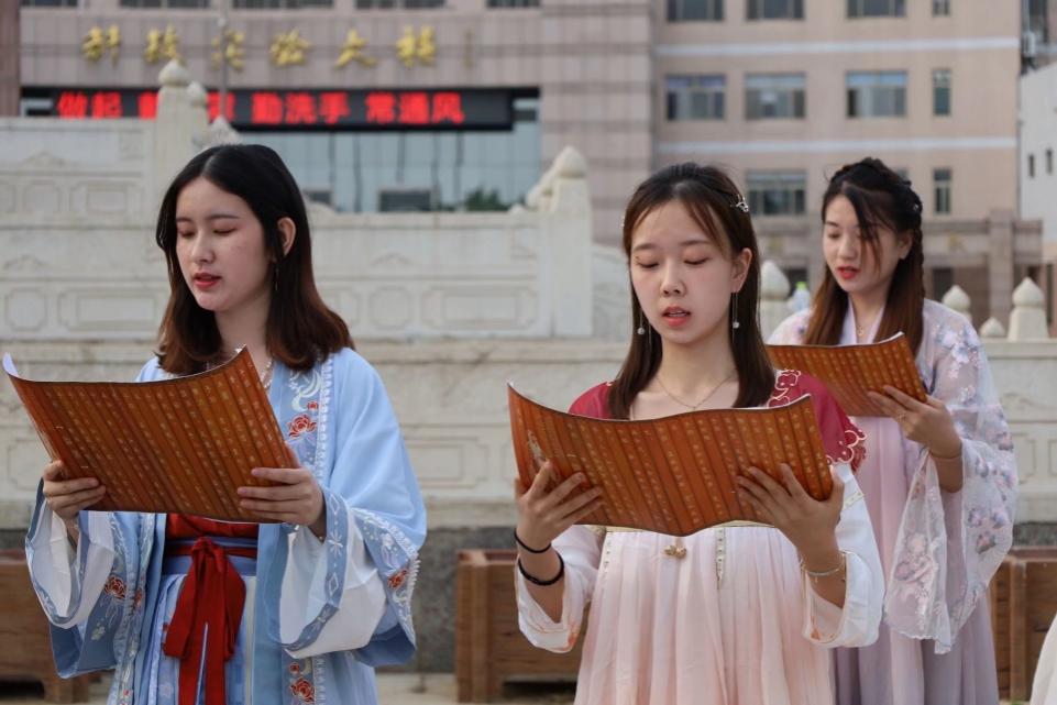 此次展演活动分为三幕,分别是“加冠成人、及笄成家”成人礼表演、“铁肩担道,思想先锋”话剧表演和“青衿之志,履践致远”诵读表演。