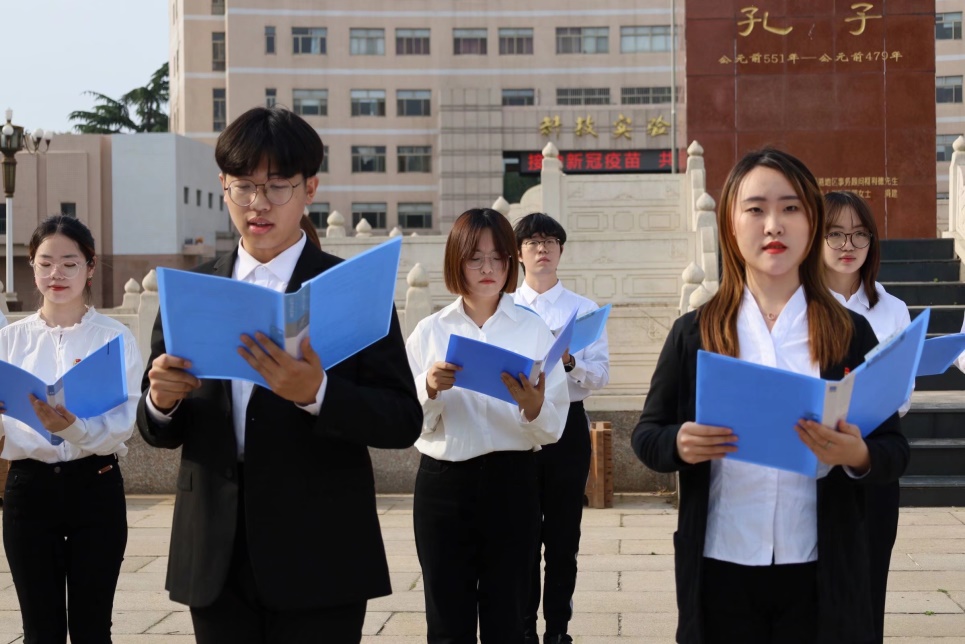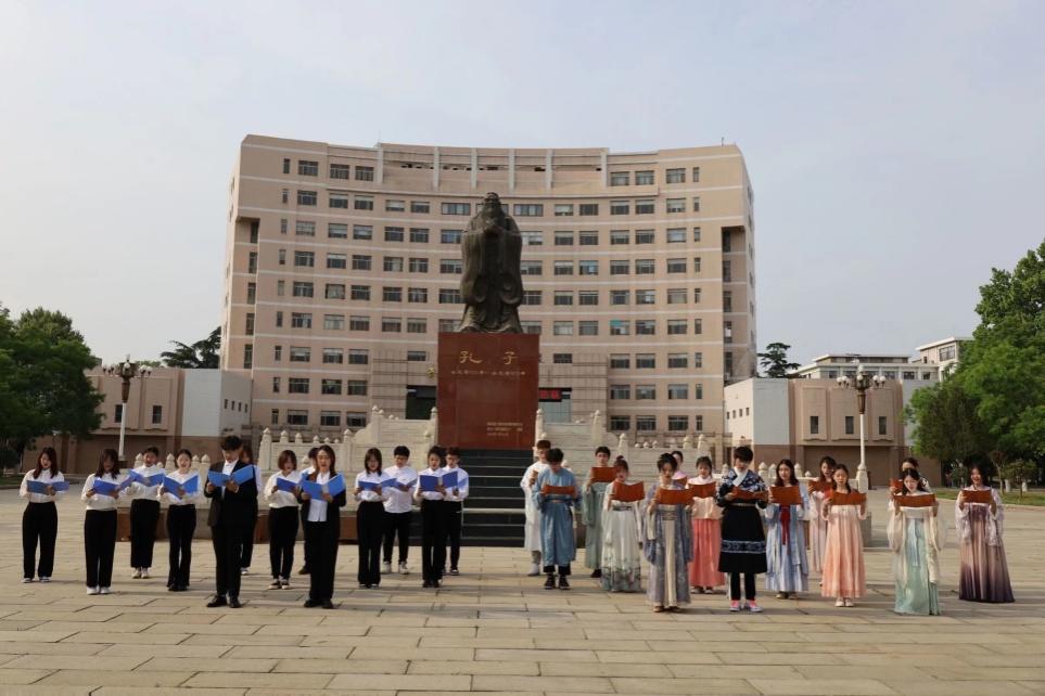 为使同学们蓬勃奋发,展现中华风采,香港赛马会投注站 儒马会通社团于孔子文化广场中央举行第三幕展演—— “青衿之志,履践致远”诵读。一侧方队汉家衣裳,中华之美,一侧方队西装革履,庄重严肃,同学们通过古今对话形式的诵读,追忆了党史的发展历程,将儒家传统文化与五四青年精神融合为一体。诵读表演让同学们更清楚地了解到中国古今变化,激励了同学们为中华复兴贡献出自己的一份绵薄之力。