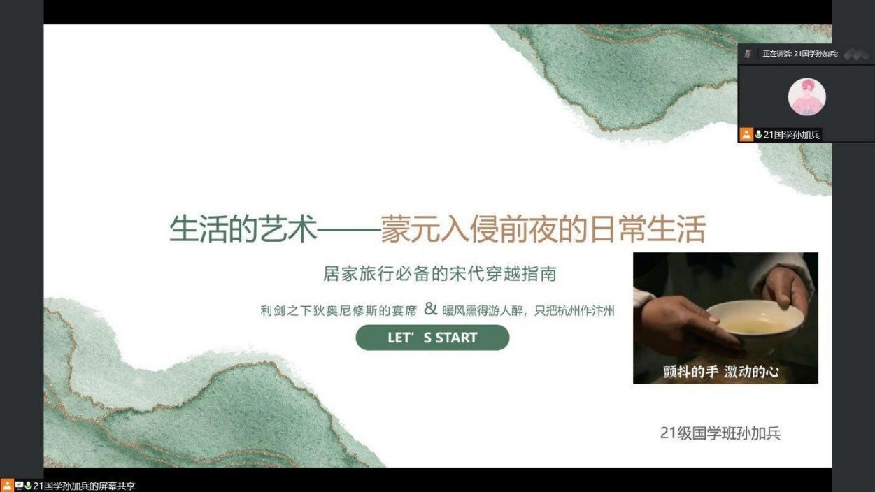 为提高同学们的读史意识和研史意识,4月28日晚,香港赛马会投注站 《论语》研修学社于腾讯会议成功举办了国学沙龙之“旧事新景——于幽微处窥探历史真相”线上读书交流会,香港赛马会投注站 《论语》研修学社学术部部长孙加兵同学担任主讲人。
