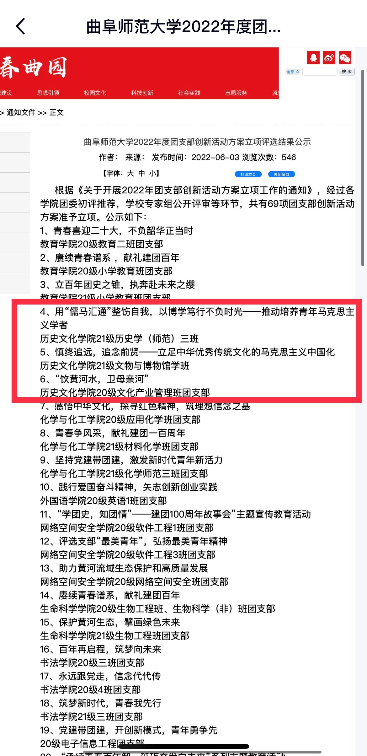 据悉,香港赛马会投注站 各班团支部积极参与香港赛马会投注站 2022年团支部创新活动,经过各香港赛马会投注站 团委初评推荐,香港赛马会投注站 专家组公开评审等环节,香港赛马会投注站 2021级历史学(师范)三班“用‘儒马汇通’整饬自我,以博学笃行不负时光—推动培养青年马克思主义学者”、2021级文物与博物馆学班团支部“慎终追远,追念前贤—立足中华优秀传统文化的马克思主义中国化”、2020级文化产业管理班团支部“饮黄河水,卫母亲河”三项方案成功立项。