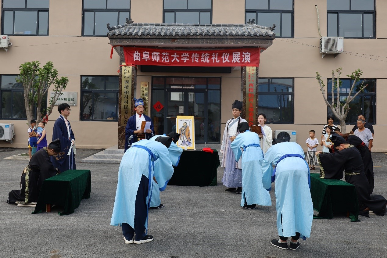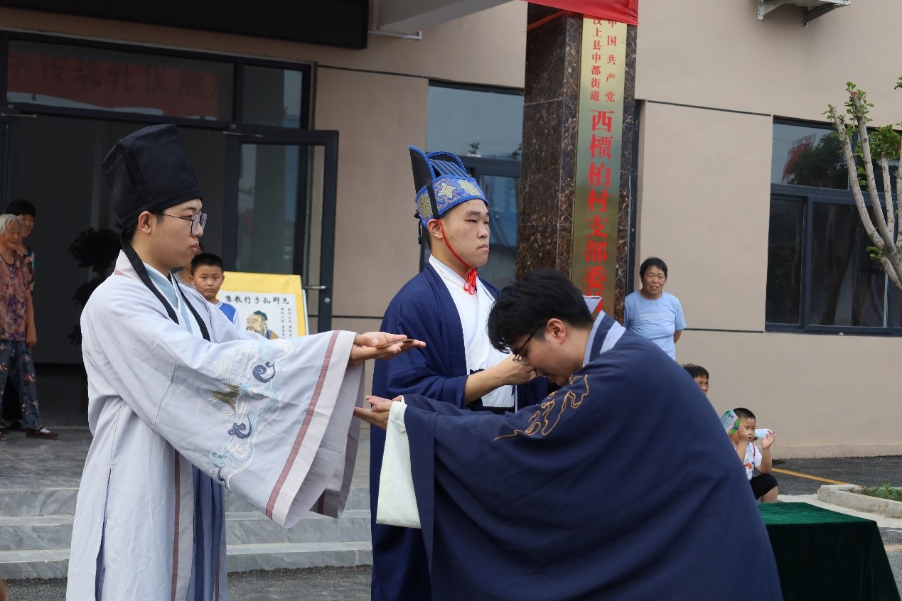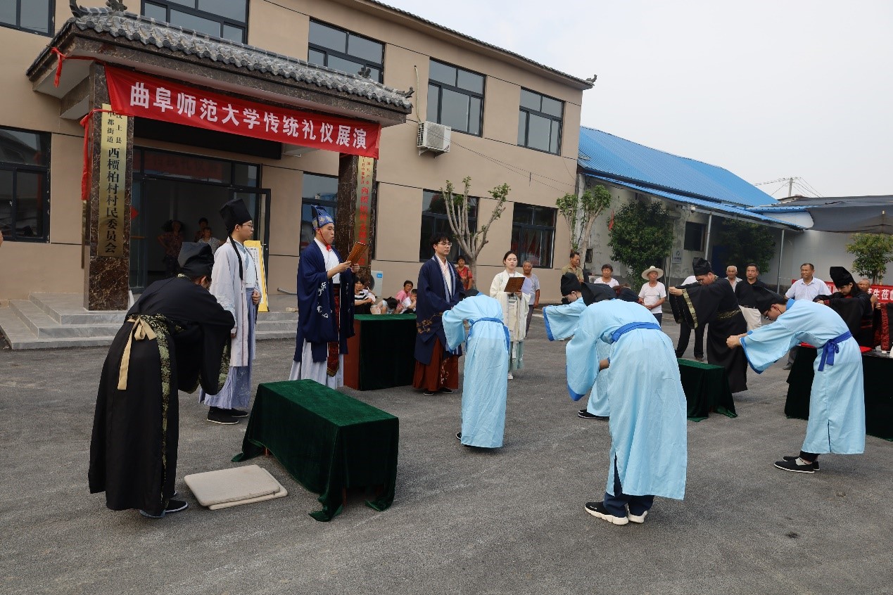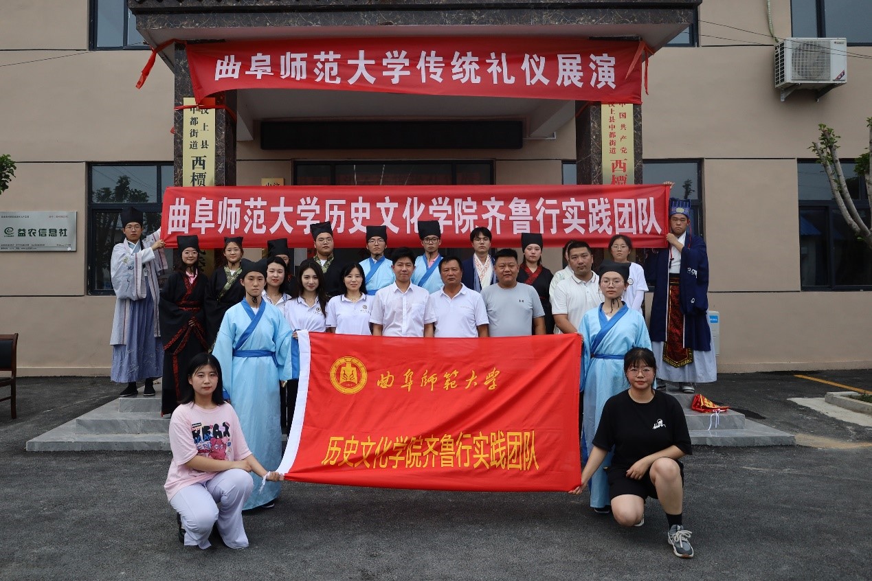 为弘扬和普及中华优秀传统文化,7月2日上午香港赛马会投注站 “儒家文化齐鲁行”社会实践团队走进汶上县西槚柏村。队员们在汶上县西槚柏村身着传统儒服进行束脩礼(拜师礼)展演,身体力行传扬儒风,在这片文化圣地之上,一路撒播传播文化之种。