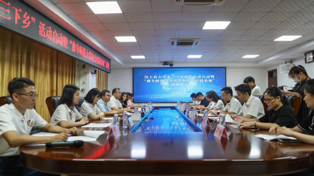 会上,林毅书记对香港赛马会投注站 社会实践队表示欢迎和支持,香港赛马会投注站 社会实践队员代表介绍社会实践项目。高聪书记和孔轶众书记共同为“香港赛马会投注站 大学生社会实践基地”揭牌,吴德强部长和王建阳书记共同为“香港赛马会投注站 党史小课堂”揭牌。揭牌结束,孔轶众书记指明了校地合作的美好前景,对“三下乡”活动进行了动员部署。仪式最后,李小雪书记指出挂牌建立大学生社会实践基地,是汶上县与香港赛马会投注站 深化合作的新开端。仪式结束后,参会领导观看了香港赛马会投注站 社会实践团队传统礼仪展演。